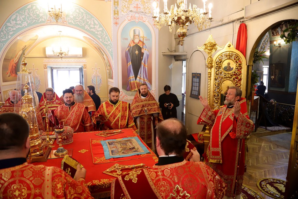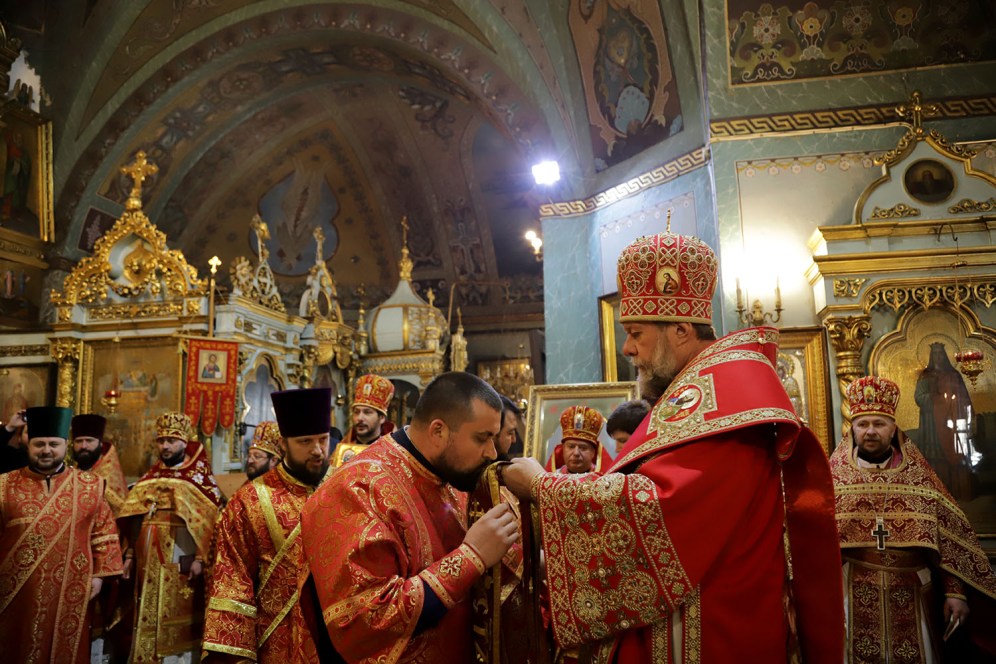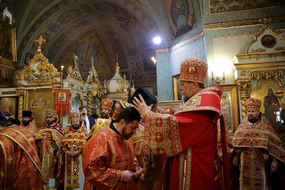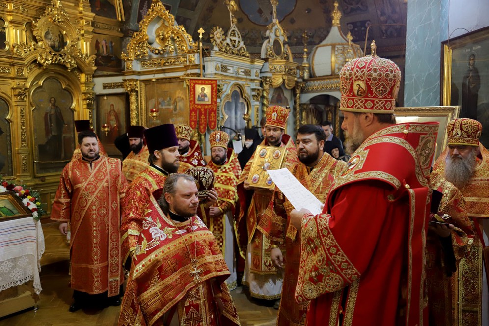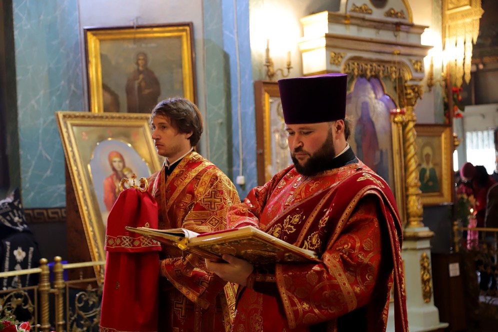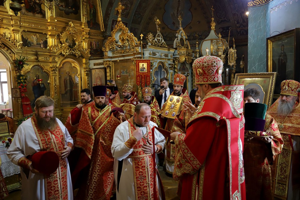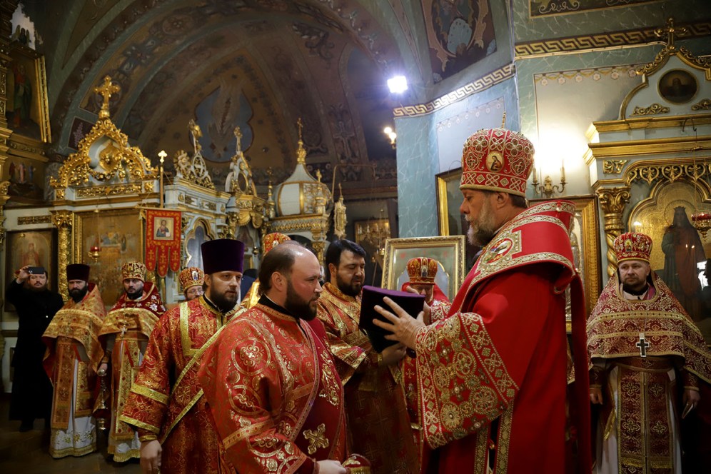 За Литургией, на Малом входе, во внимание к пастырским трудам отдельные клирики Федоро-Тироновского монастыря были удостоены богослужебных наград.