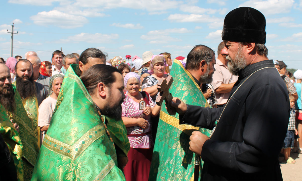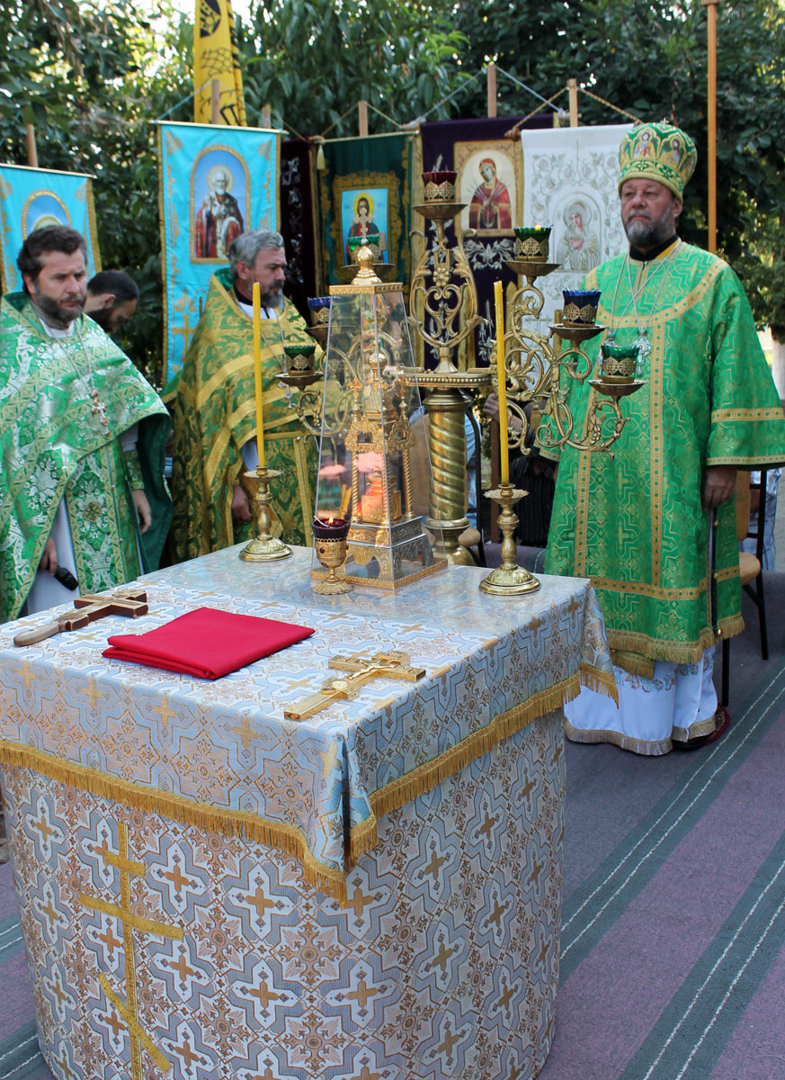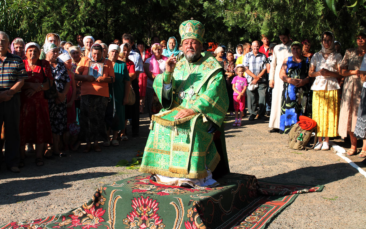 После краткого приветствия, процессия направилась к местному Параскевинскому храму, где был совершен благодарственный молебен. Последовал краткий отдых и братская трапеза.