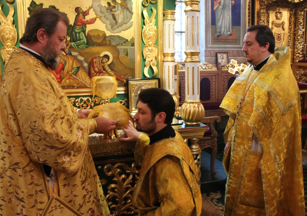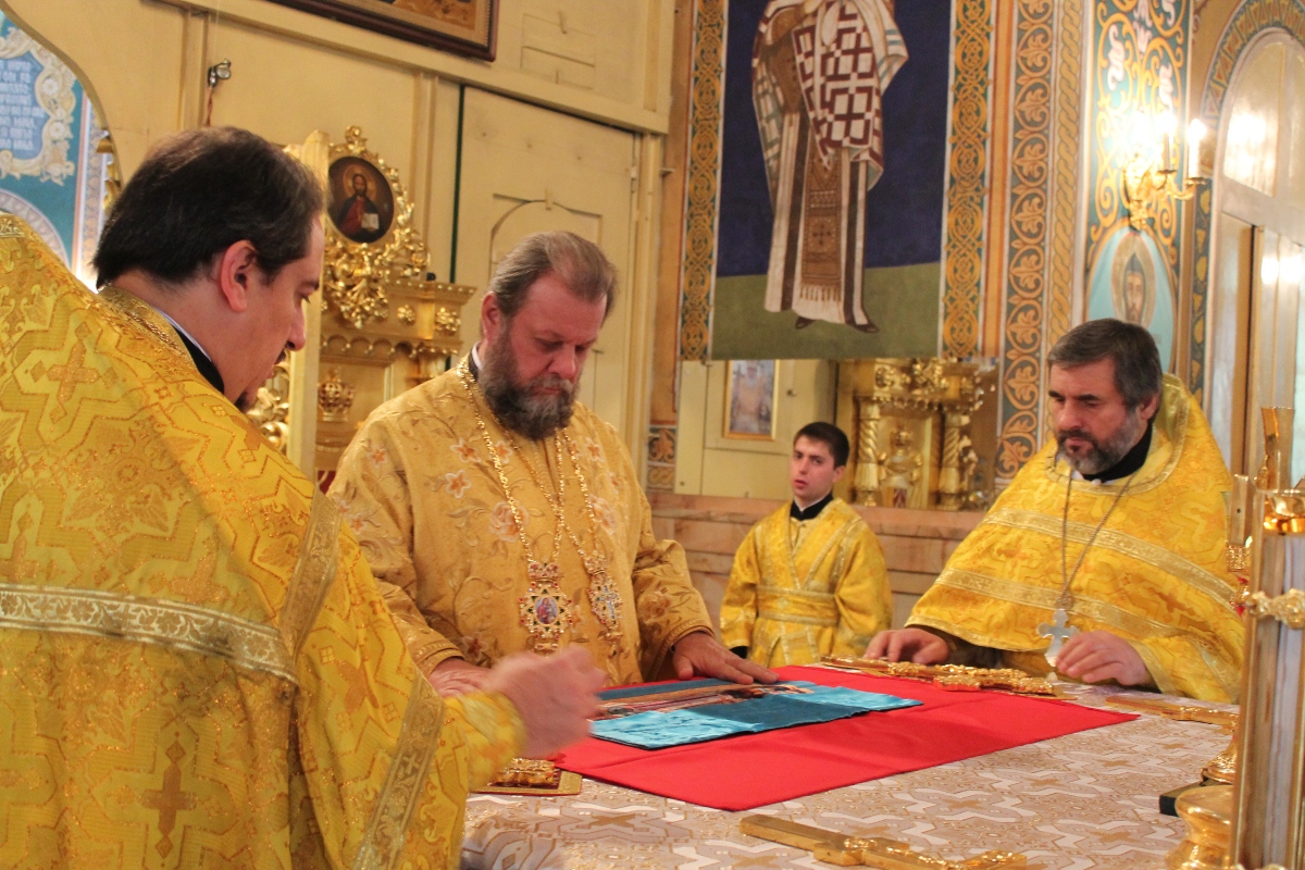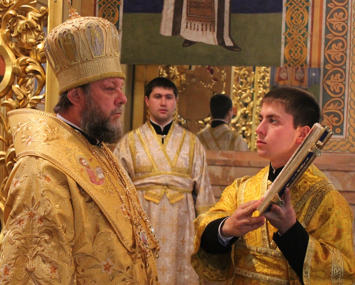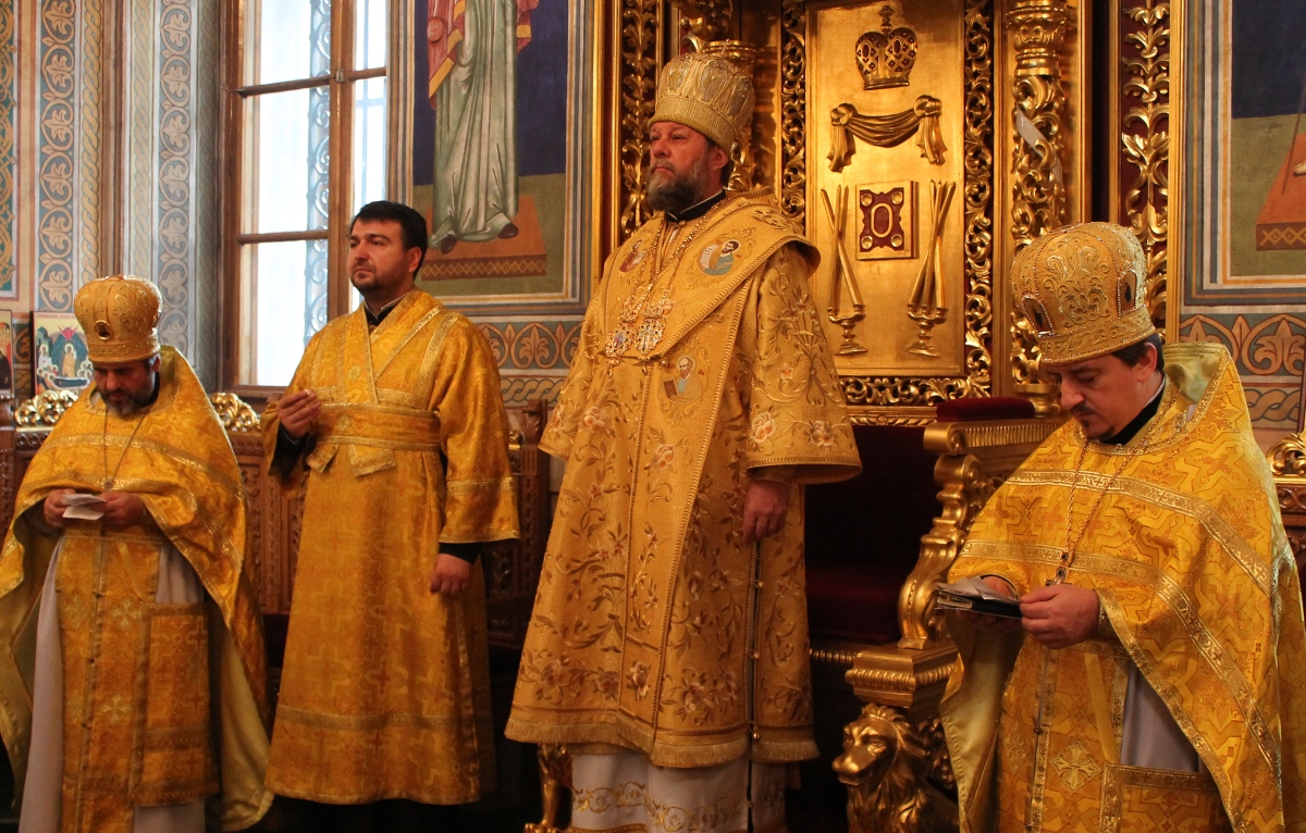 Сослужили Его Высокопреосвященству соборные клирики во главе с ключарем собора митр. прот. Вадимом Кейбашем, секретарем Кишиневско-Молдавской Митрополии.