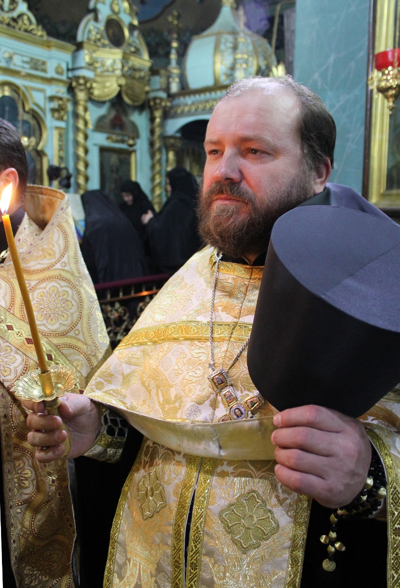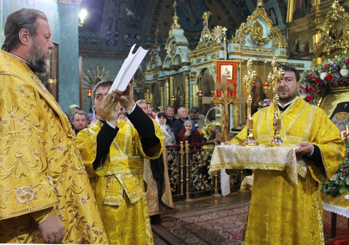 За богослужением был совершен чин освящения двух напрестольных крестов, которые были переданы в дар обители ее духовником-администратором иеромонахом Николаем (Рошка).