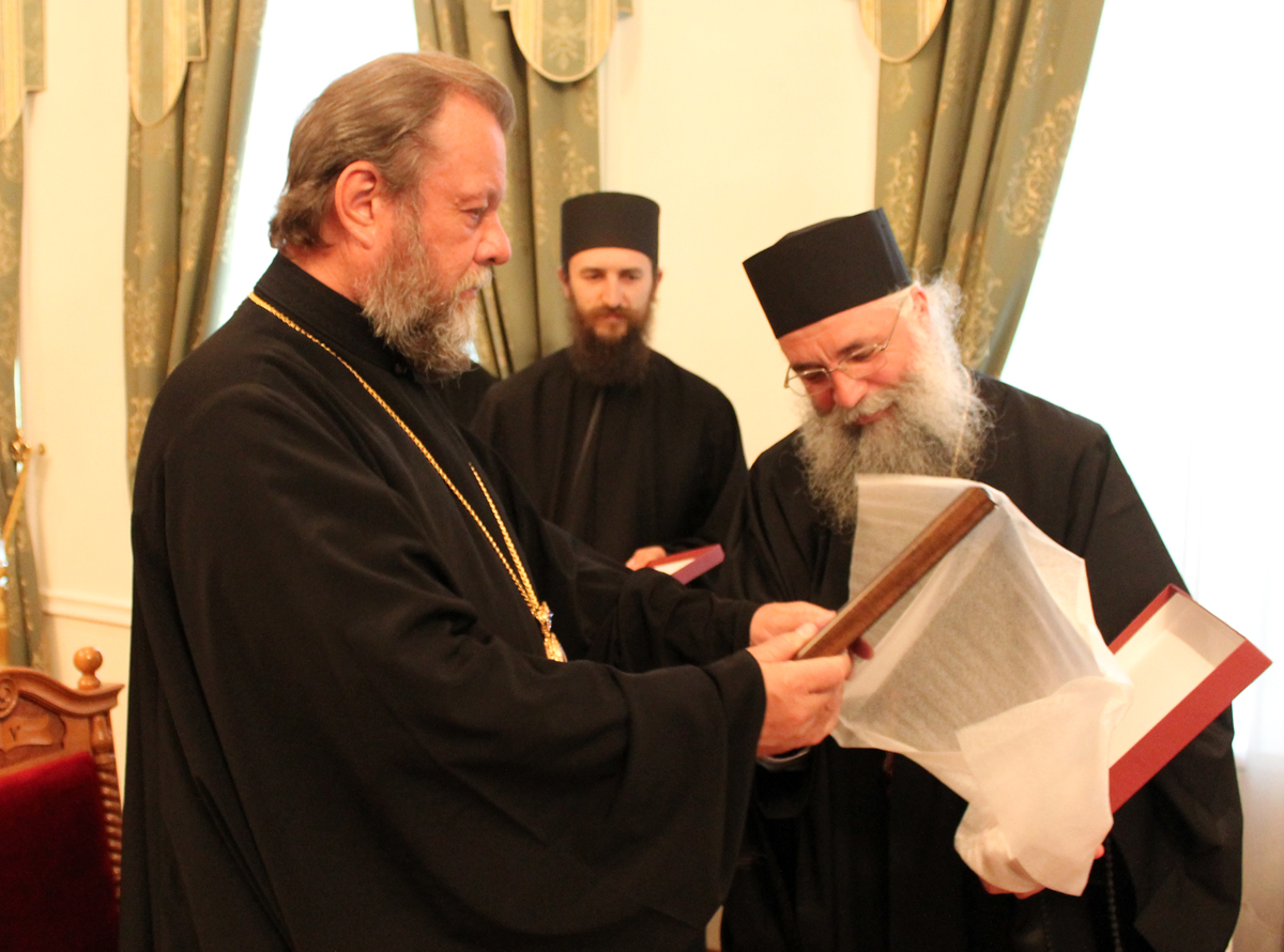 Митрополит Владимир встретился с архимандритом Мелхиседеком (Велник), игуменом монастыря Путна (Румыния)