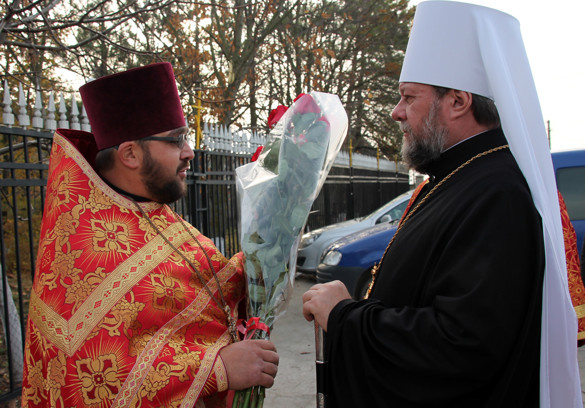 У врат храма Высокопреосвященного владыку Митрополита встречали под звон колоколов и хлебом-солью благочинный церквей Ново-Аненского района протоиерей Игорь Келя, настоятель прихода протоиерей Георгий Паладичук и примар села Спея Валерий Котец.