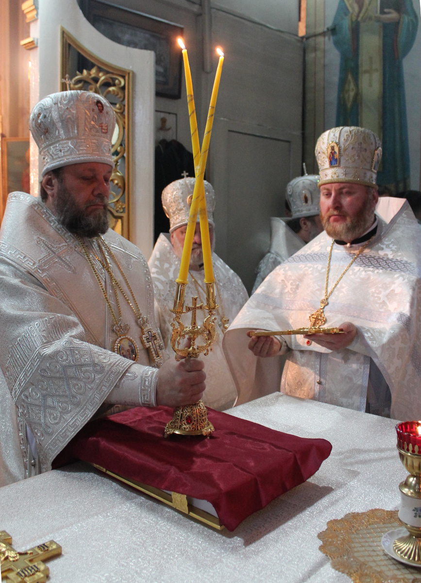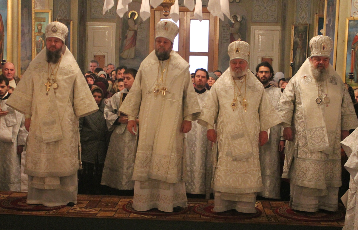 Его Высокопреосвященству сослужили: Высокопреосвященный архиепископ Тираспольский и Дубоссарский Савва, Преосвященный епископ Кагульский и Комратский Анатолий, Преосвященный епископ Единецкий и Бричанский Никодим, духовник Кишиневского Феодоро-Тироновского Чуфлинского женского монастыря архим. Николай (Рошка), благочинный церквей Комратского района митр. прот. Петр Келеш, секретарь Епархиального Управления Еденицко-Бричанской епархии митр. прот. Адриан Котеля, соборное духовенство, а также священнослужители Кагульско-Комратской епархии.
