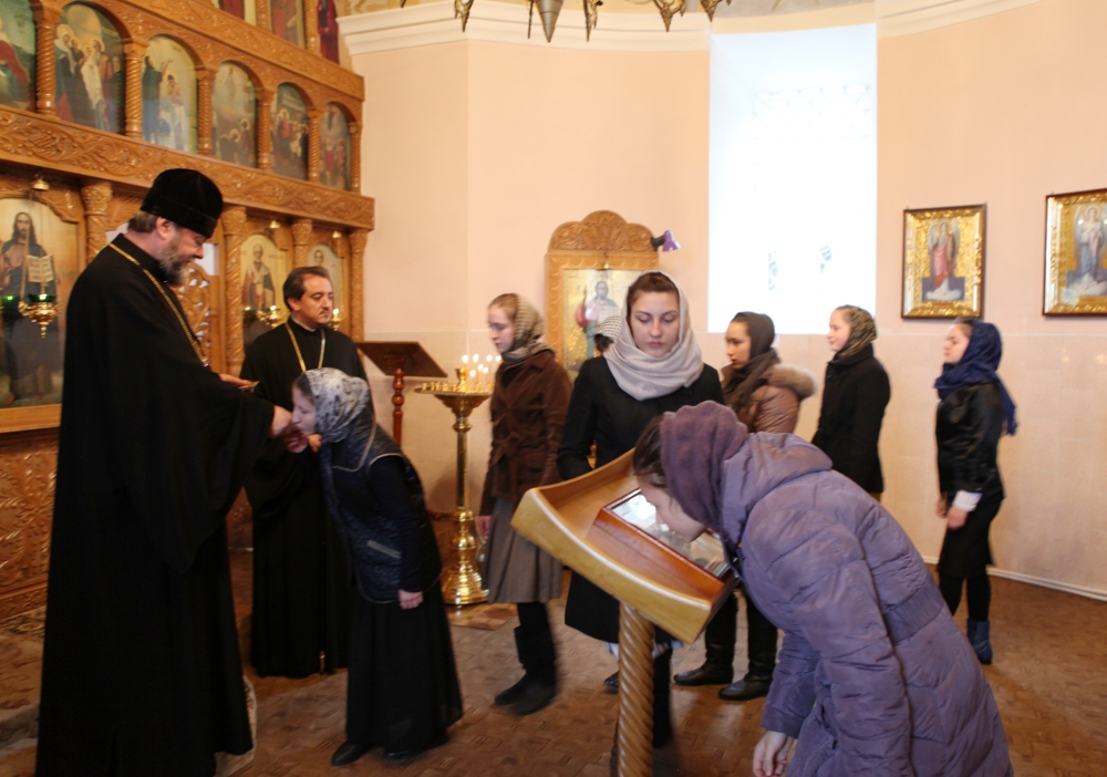 Игуменья Епистимия (Гончаренко) ознакомила Предстоятеля с результатами в области духовного образования, которые были достигнуты учащимися в Сурученском женском Духовном семинаре-лицее «Королева Мария», действующем на территории монастыря.