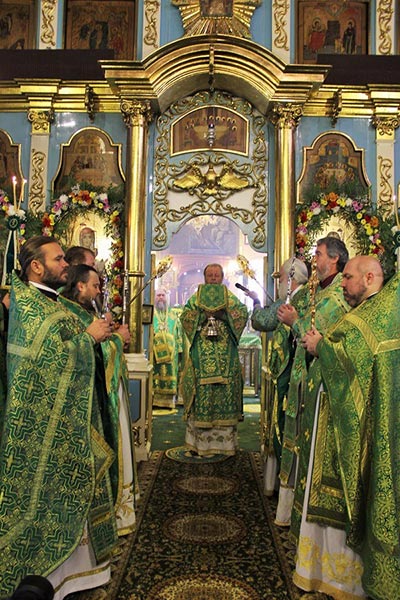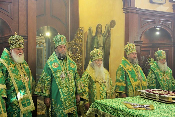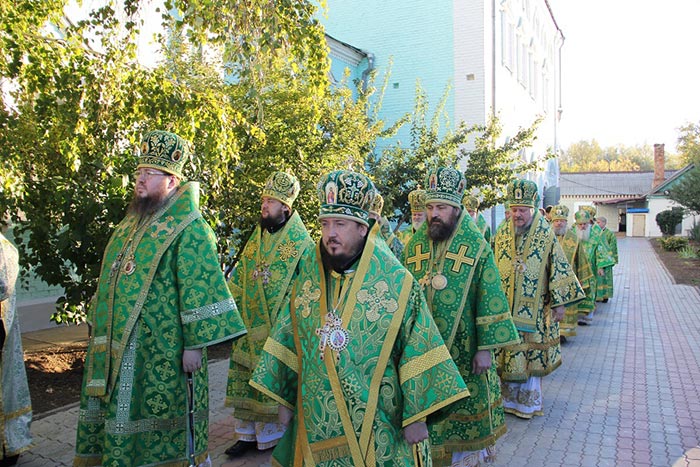 Божественную Литургию в Михаило-Архангельском соборе города Уральска возглавили: глава Православной Церкви Молдовы митрополит Кишиневский и всея Молдовы Владимир, глава Православной Церкви Казахстана митрополит Астанайский и Казахстанский Александр и глава Среднеазиатского Митрополичьего округа митрополит Ташкентский и Узбекистанский Викентий.