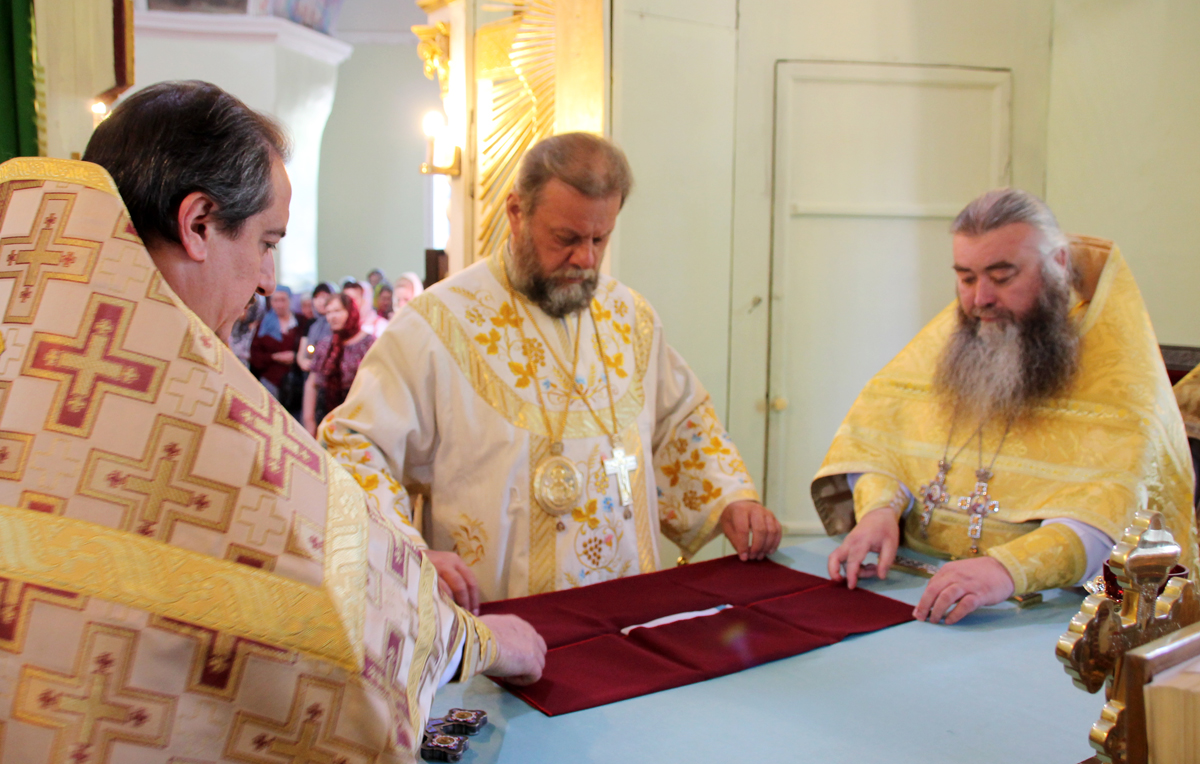 На малом Входе отдельные священнослужители во внимание к понесенным трудам удостоились богослужебных и церковных наград.