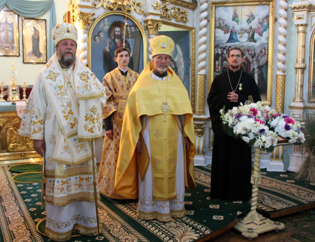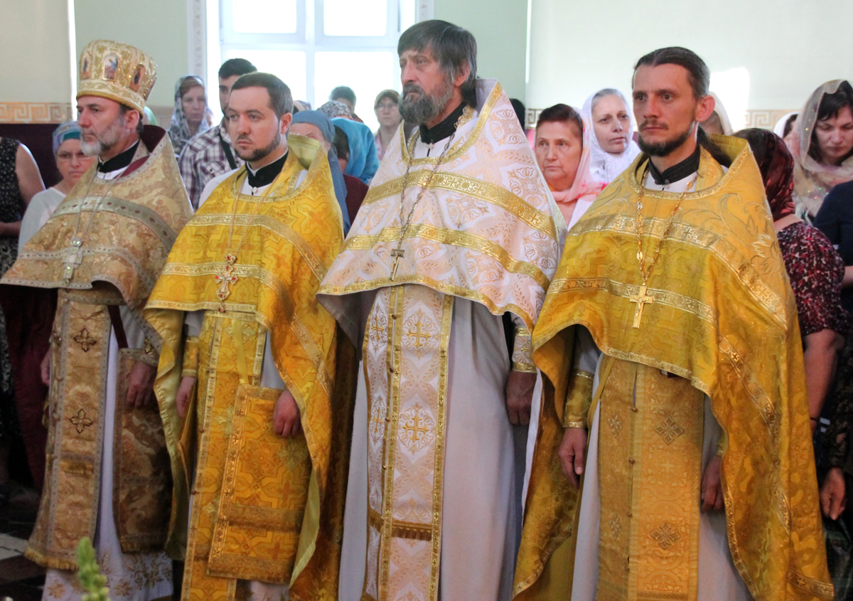 Его Высокопреосвященству сослужили: митр. прот. Вадим Кейбаш, секретарь Митрополии и благочинный церквей Кишиневского муниципия (Сектор 1), архим. Адриан (Бачу), настоятель Сахарнянского Свято-Троицкого мужского монастыря, митр. прот. Анатолий Стефанов, благочинный церквей Яловенского района, митр. прот. Евгений Бытка, настоятель церкви, клирики Всехсвятского храма.