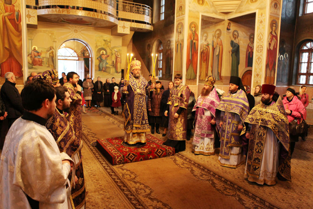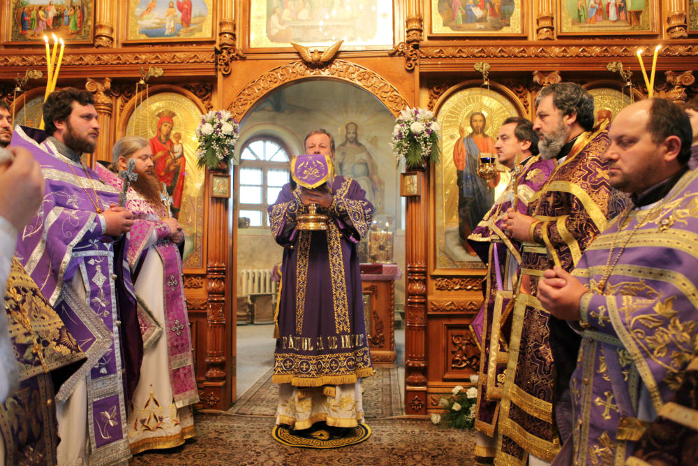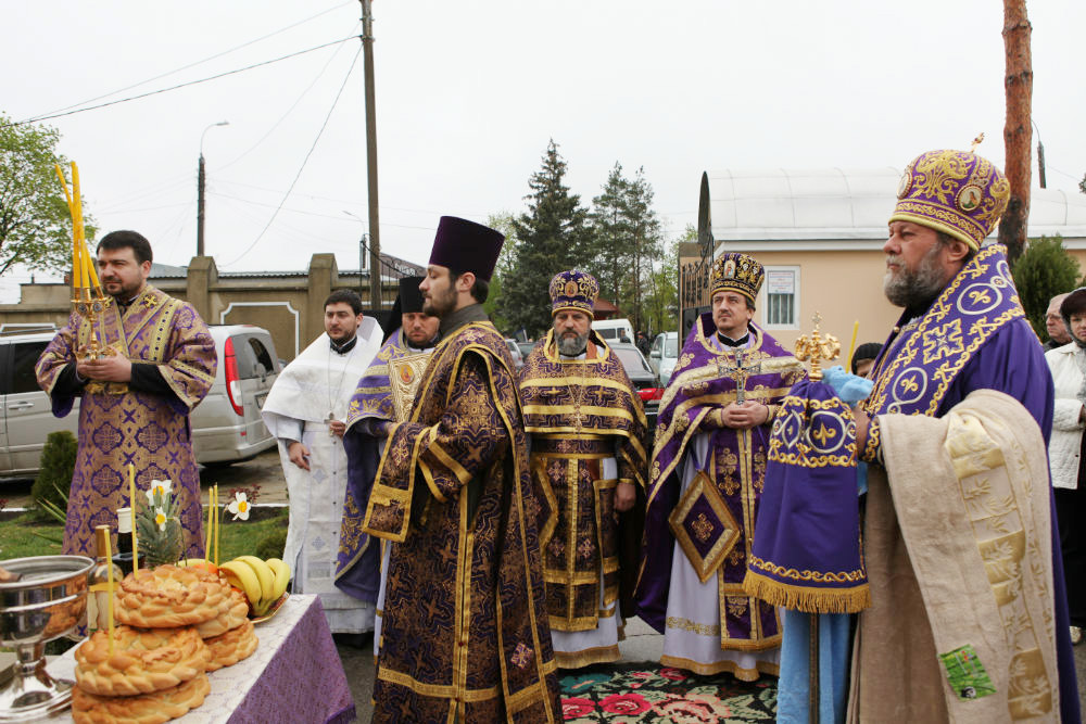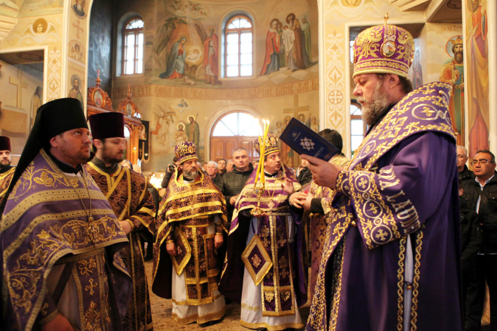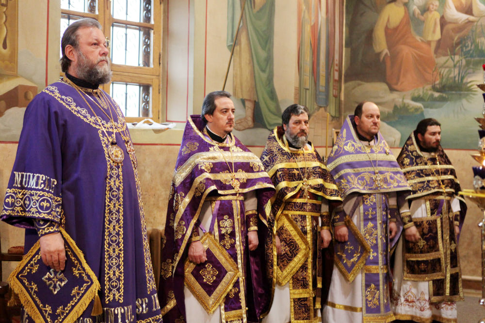 Его Высокопреосвященству сослужили: секретарь Митрополии митр. прот. Вадим Кейбаш, игумен Успенского Цыганештского мужского монастыря архим. Иринарх (Костру), благочинный церквей Дрокиевского района митр. прот. Павел Вулуцэ и духовенство храма.
