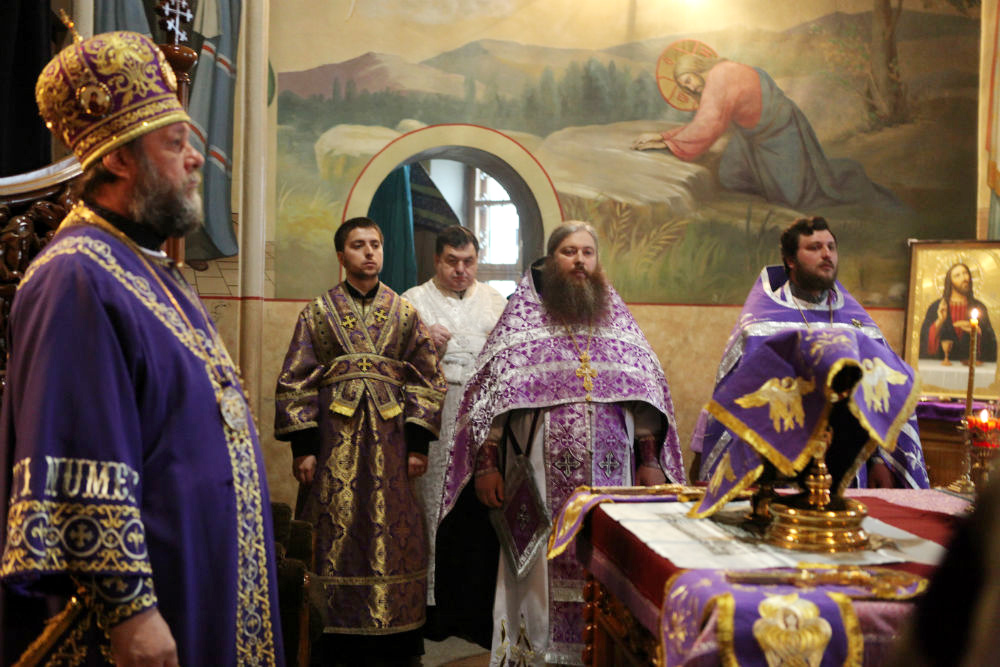 На малом входе ряд сослужащих Его Высокопреосвященству священнослужителей были удостоены церковных наград.