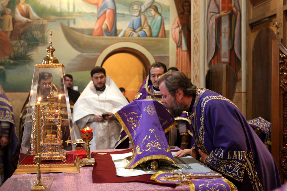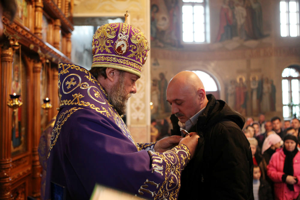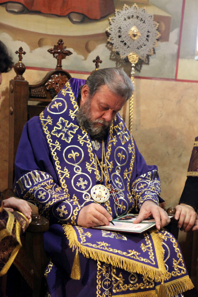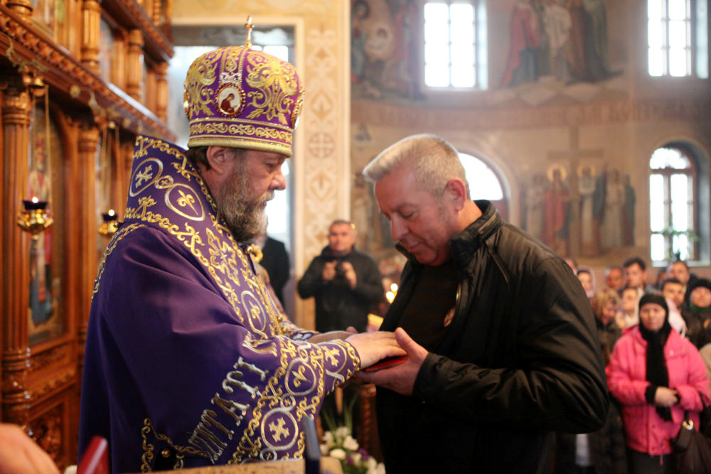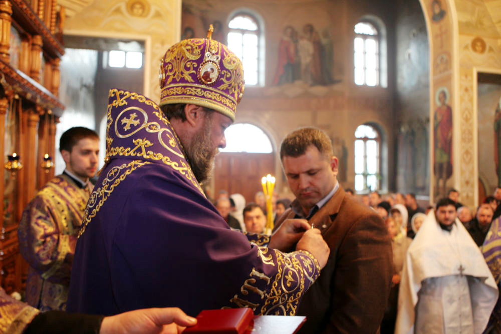 По окончании богослужения, архипастырь обратился к присутствующим с поучительным словом, после чего удостоил церковных орденов некоторых ктиторов и благотворителей храма, пожелав им помощи Божией в их богоугодном деле.