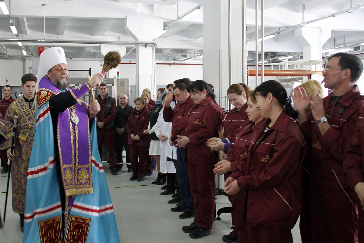 За богослужением присутствовали генеральный директор «Крикова» Юрий Карп, а также администрация и многочисленные сотрудники комбината.