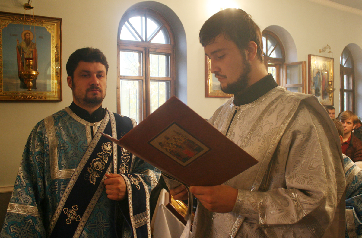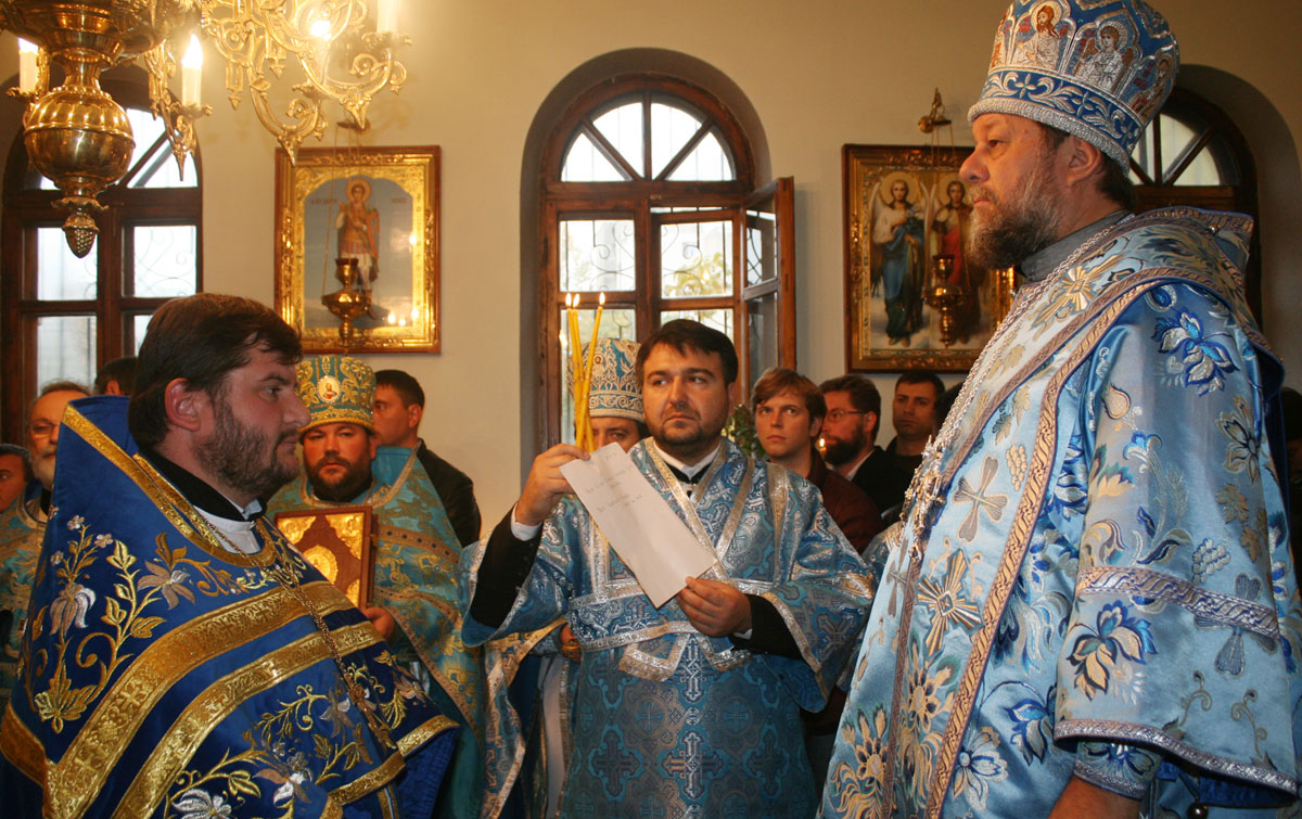 На малом входе, настоятель Покровского храма свящ. Виктор Лукин был возведен в сан протоиерея, а свящ. Вячеслав Ротарь удостоился золотого наперсного креста.