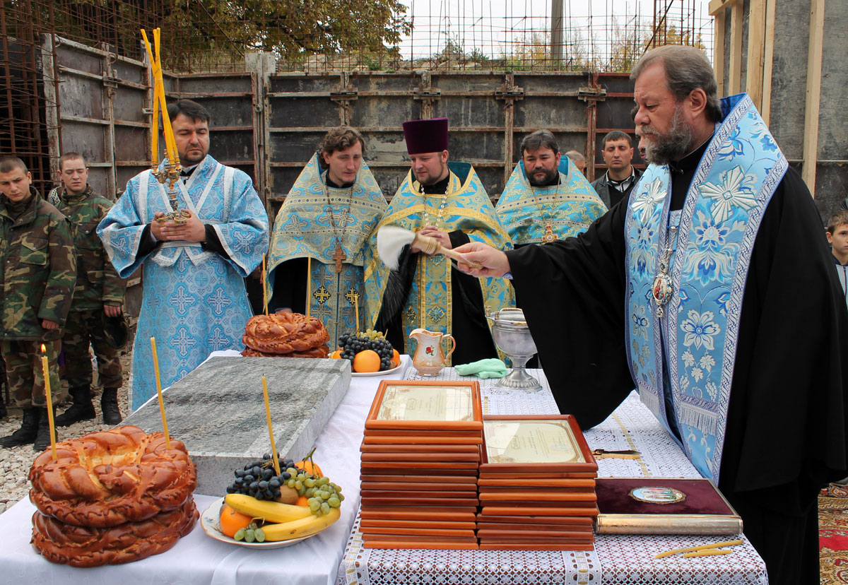 В продолжение архипастырского визита, Митрополит Владимир совершил чин освящения закладного камня на месте старого храма, разрушенного в годы советской власти.