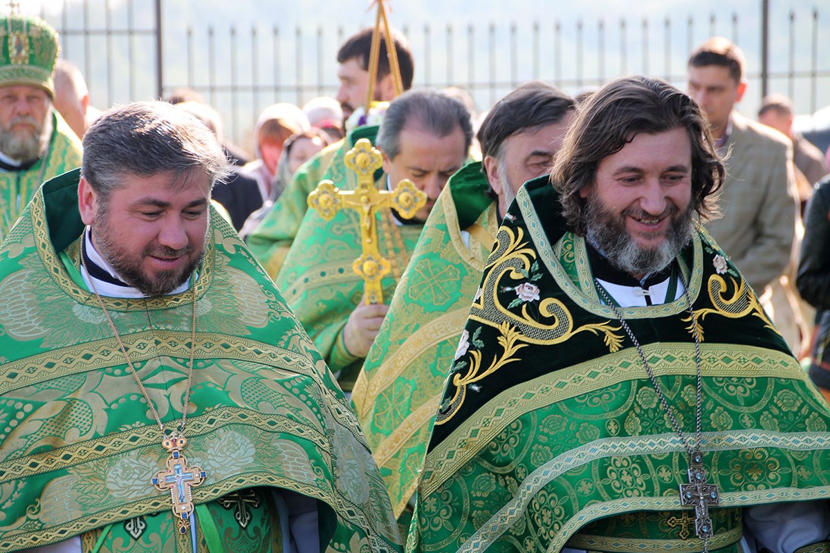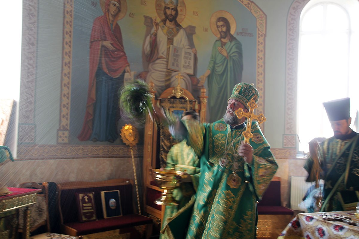 По окончании богослужения последовал крестный ход вокруг храма с чтением Евангелия, после чего архипастырь возглавил благодарственный молебен.
