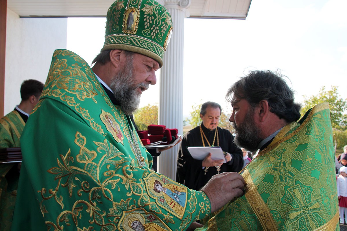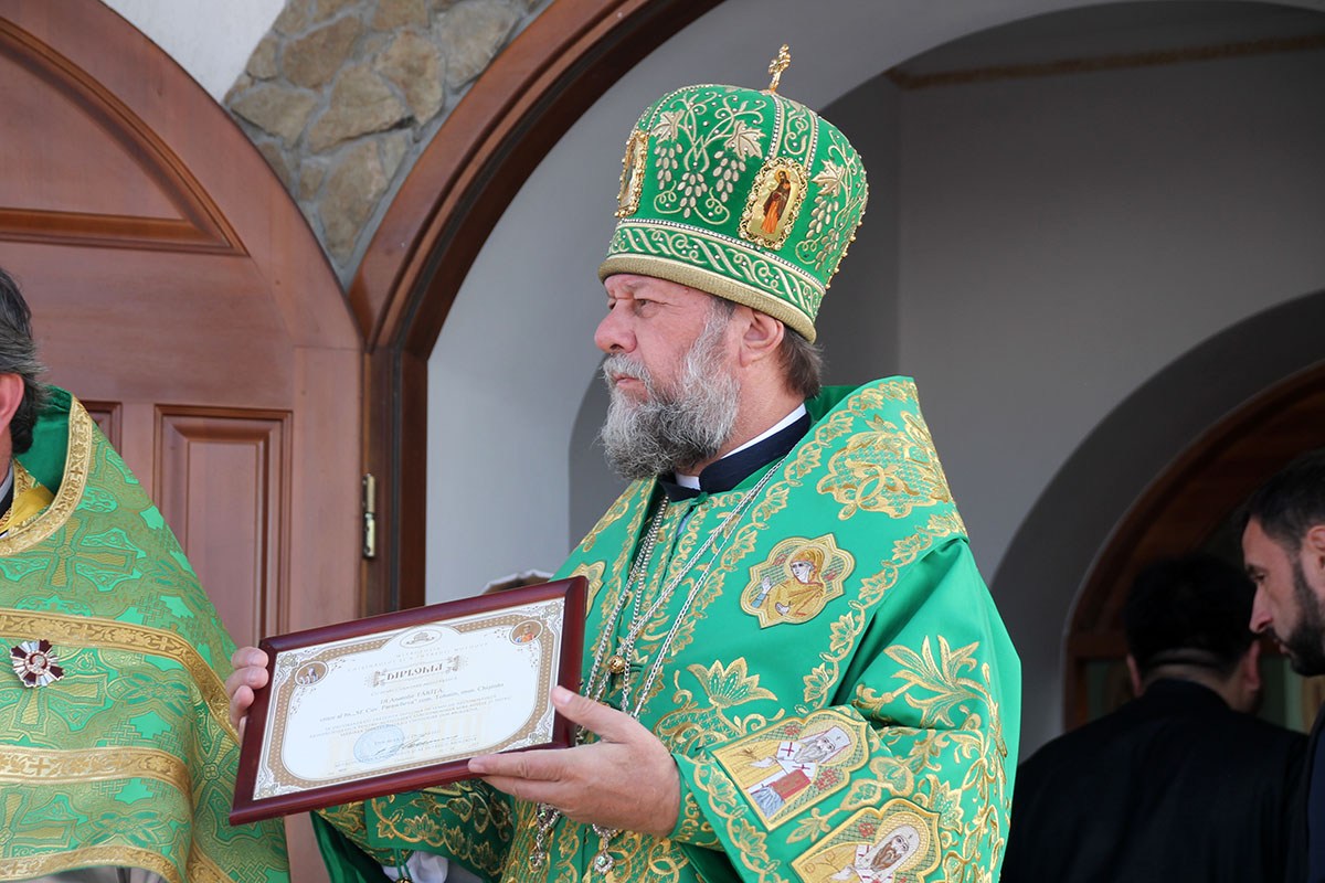 На Малом входе, во внимание к приложенным пастырским и церковно-административным трудам Высокопреосвященный Митрополит Владимир удостоил настоятеля храма митр. прот. Родиона Врынчану правом служения Литургии с отверстыми Царскими вратами по «Отче наш…». Такой же богослужебной награды был удостоен и настоятель Богородице-Рождественского храма с. Колоница Кишиневского мун-я митр. прот. Виктор Тофан.