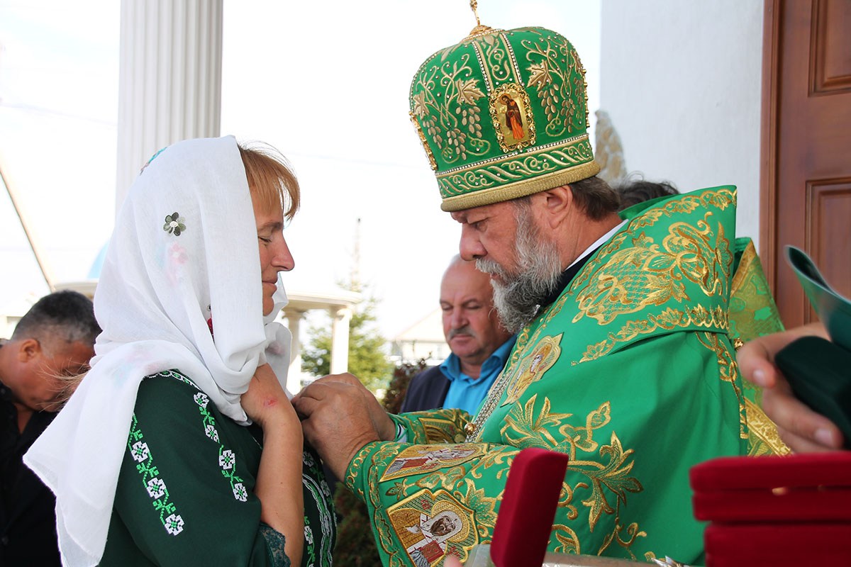 Далее, глава Православной Церкви Молдовы обратился к пастве с архипастырским словом, поздравив всех жителей села Тогатино с окончанием строительных работ по воздвижению нового православного храма и удостоил отдельных ктиторов и благотворителей церковных наград.