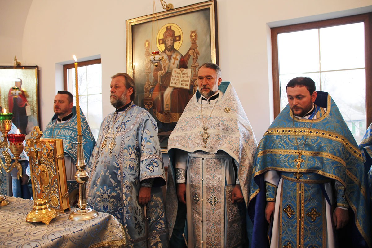 Его Высокопреосвященству сослужили: благочинный церквей Рышканского района митр. прот. Святослав Унгуряну, благочинный церквей Криулянского и Дубоссарского районов митр. прот. Федор Пелин, настоятель храма священник Константин Рычу, духовенство Рышсканского благочиния.
