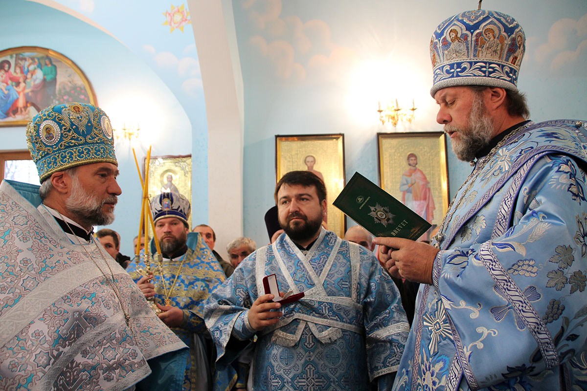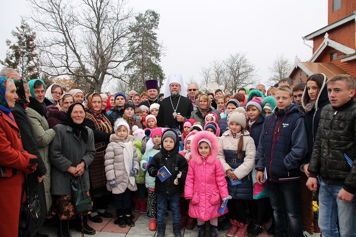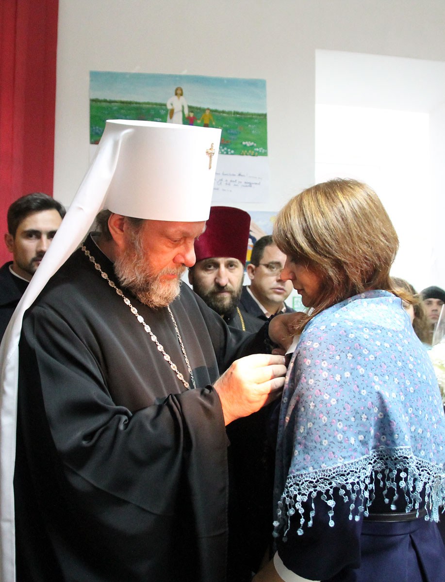 Далее, Высокопреосвященный Владыка Митрополит обратился к присутствующим с архипастырским словом. Его Высокопреосвященство поздравил всех прихожан и жителей Богородице-Рождественского храма с окончанием восстановительных работ. В знак признательности и высокой оценки приложенных трудов, иерарх удостоил отдельных ктиторов и благотворителей прихода высоких церковных наград. Среди награжденных архипастырем был и ктитор Василий Паскарь, который был удостоен ордена «За Церковные заслуги». Все присутствующие за богослужением верующие получили из рук Его Высокопреосвященства молитвословы и религиозную литературу.