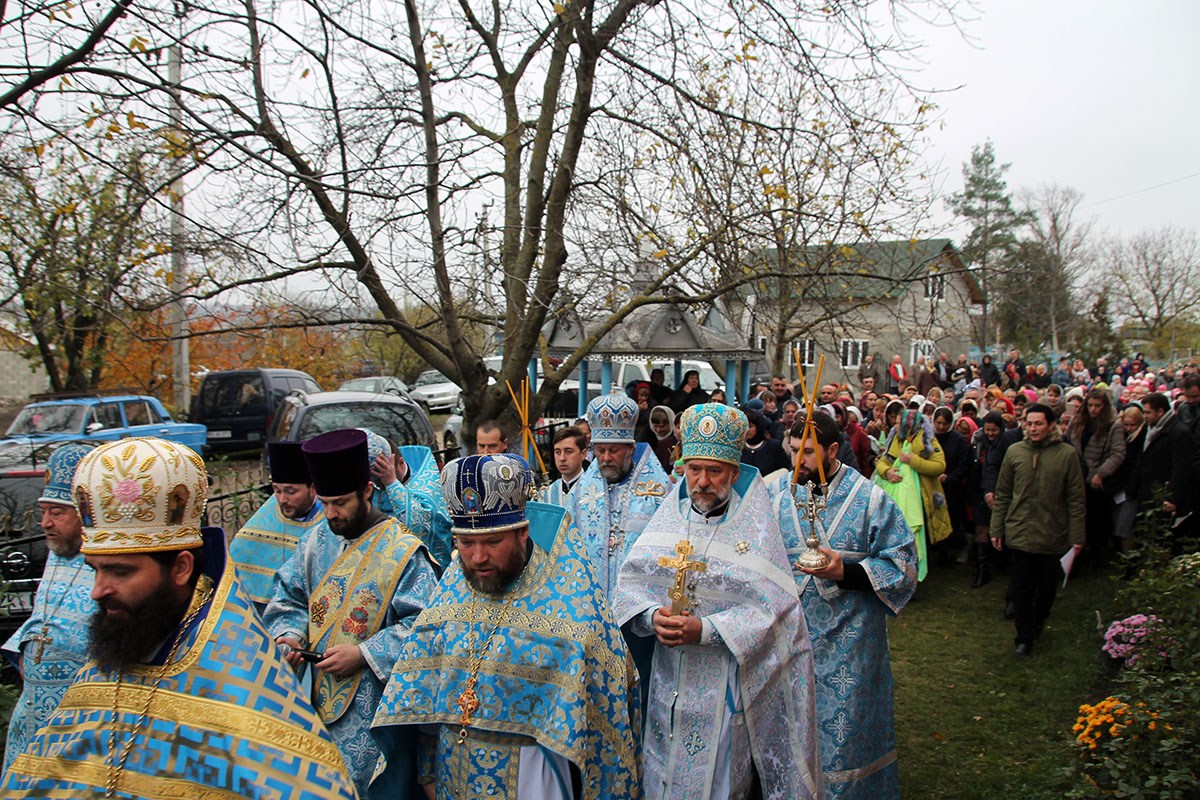 По окончании Божественной литургии последовал крестный ход вокруг храма с чтением Евангелия, после чего был совершен благодарственный молебен.