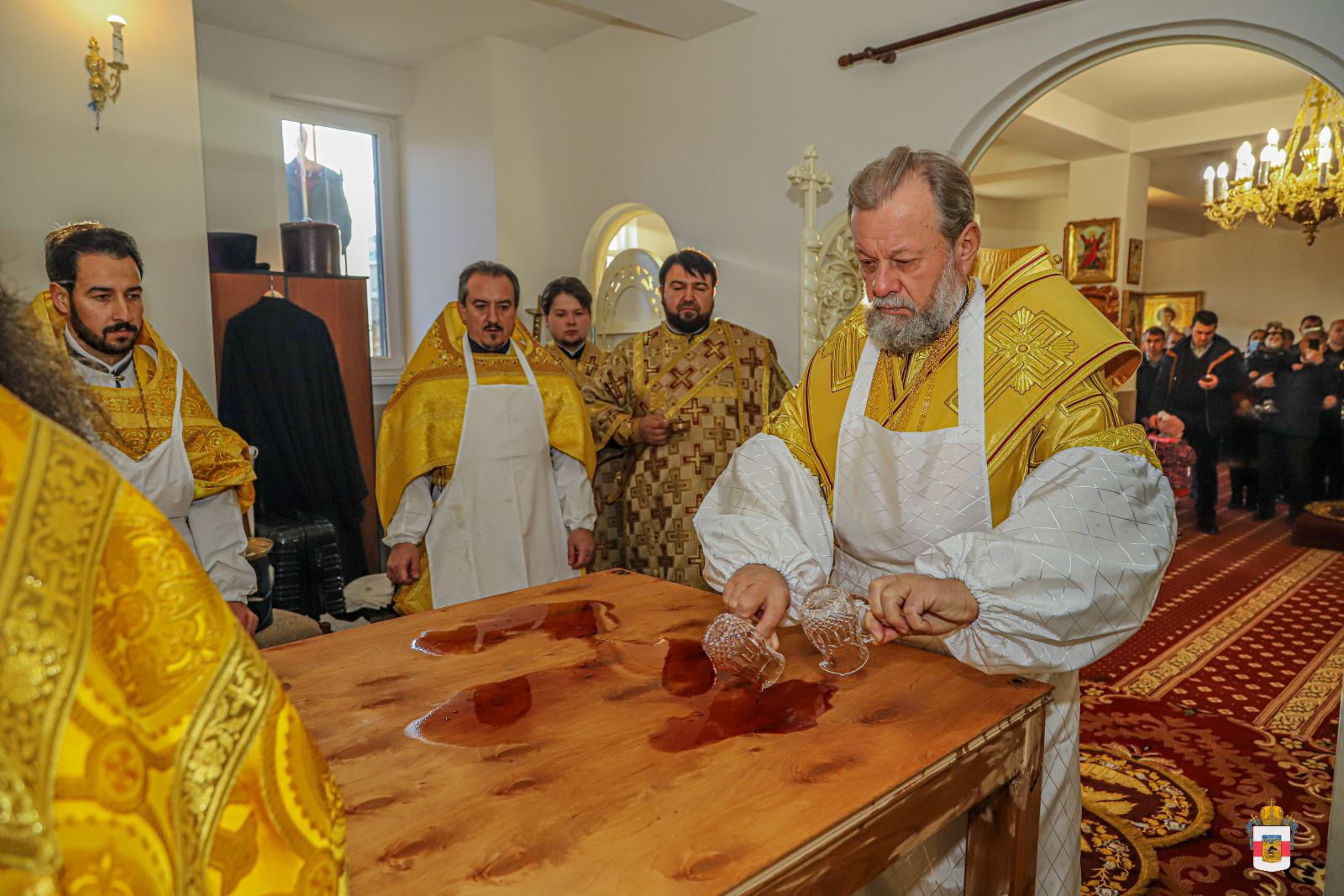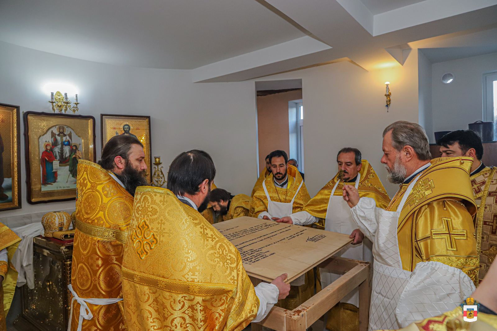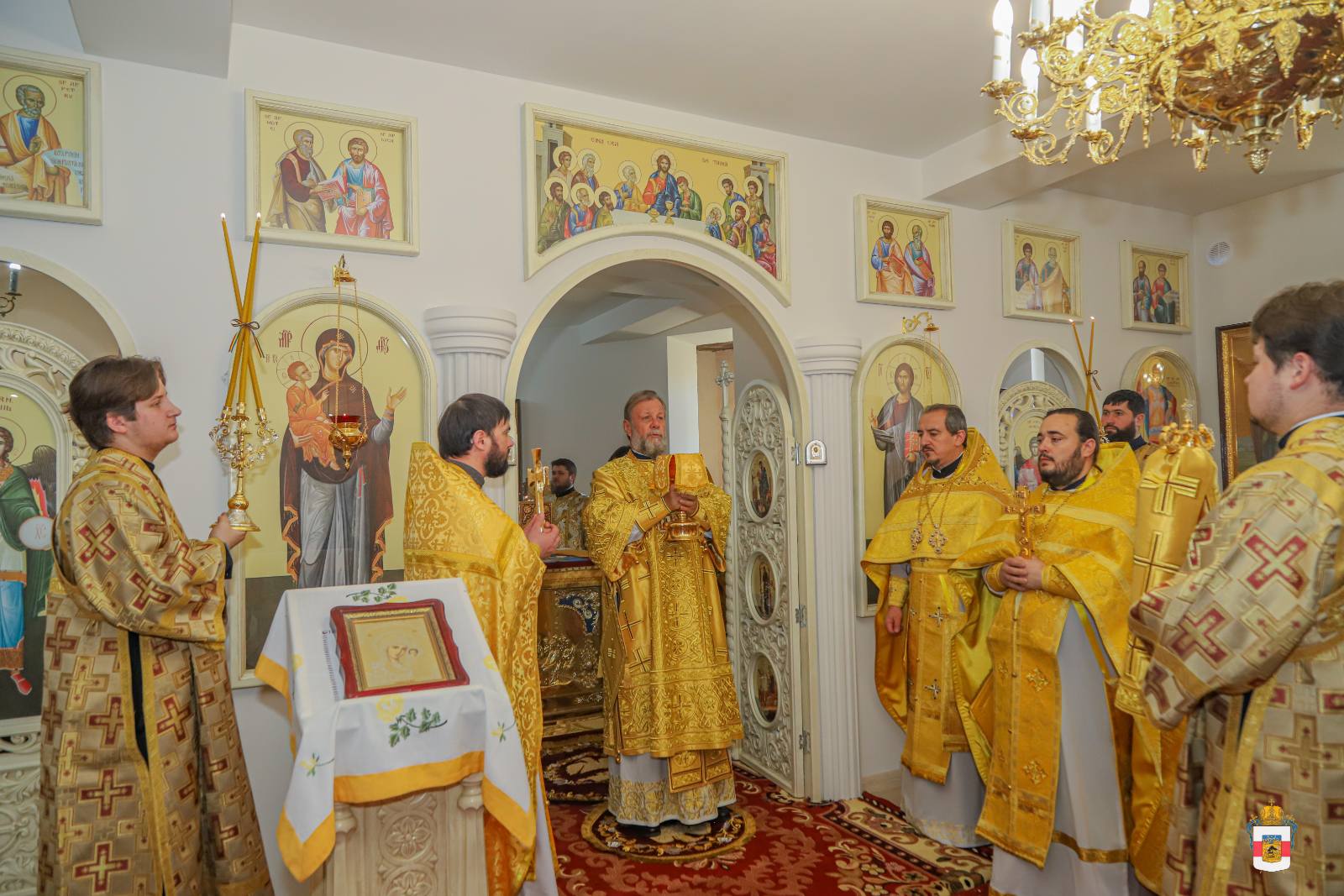 Его Высокопреосвященству сослужили секретарь Молдавской митрополии и благочинный церквей Кишиневского муниципия (Сектор 1) митрофорный протоиерей Вадим Кейбаш, председатель Синодального отдела по духовному окормлению медицинских учреждений иерей Марин Чиж, настоятель Димитриевского храма иерей Владимир Козонак, духовенство Кишиневского благочиния.