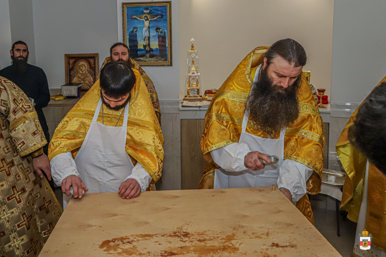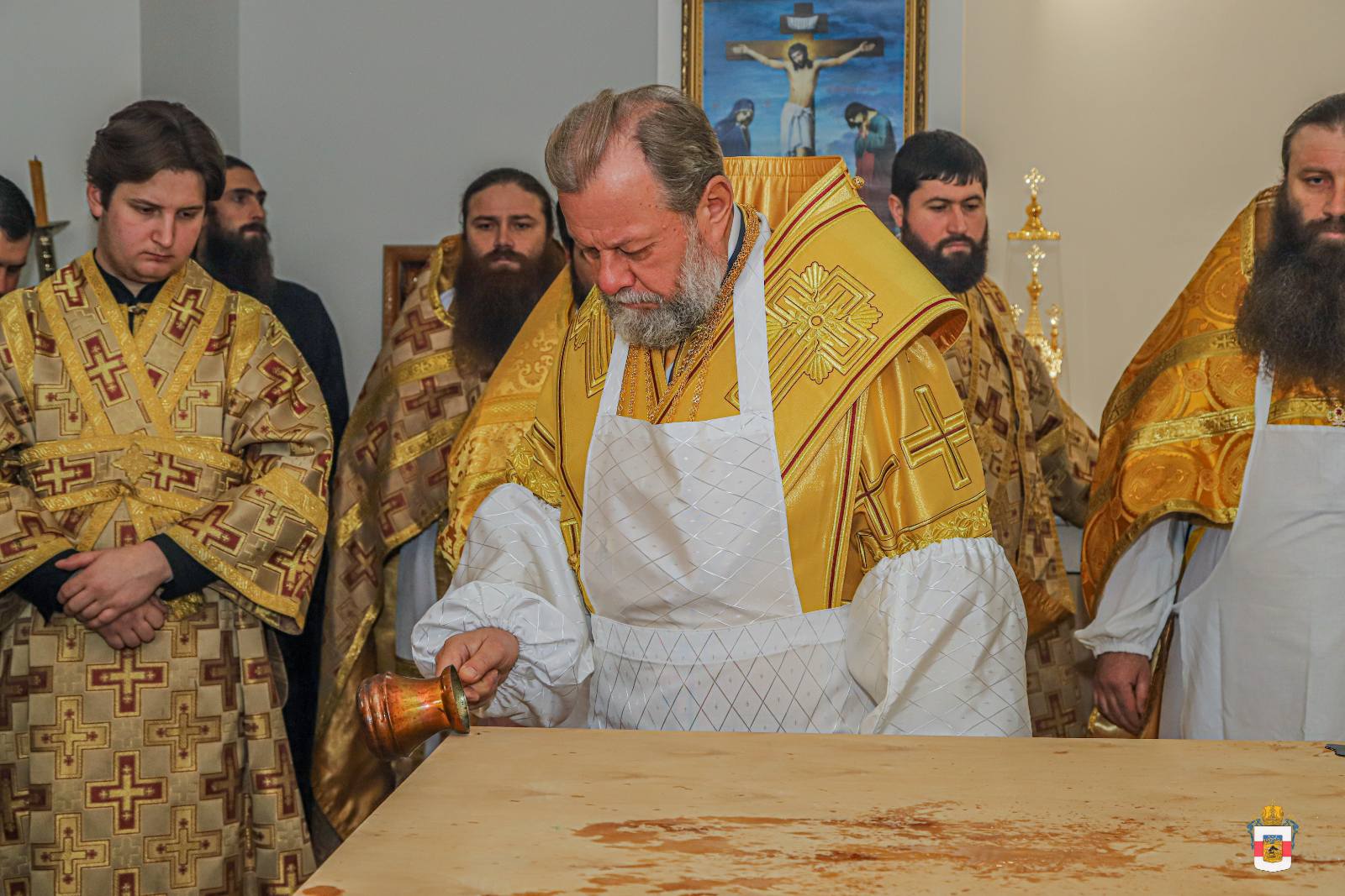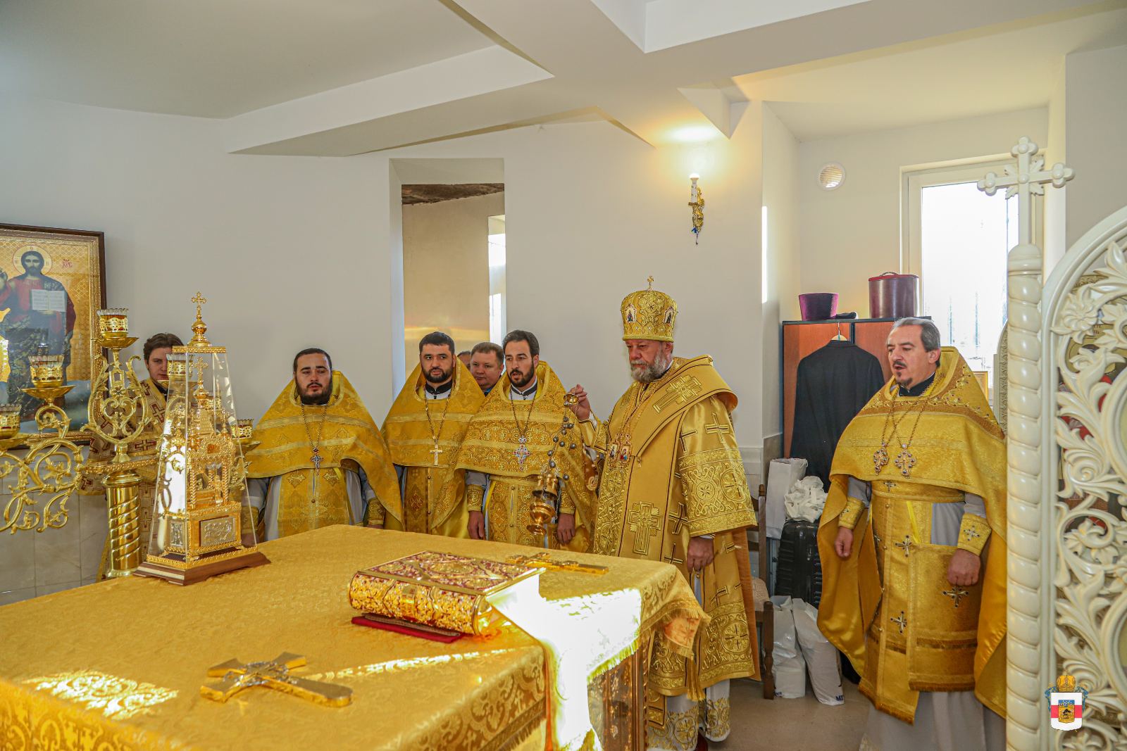 Его Высокопреосвященству сослужили секретарь Молдавской митрополии и благочинный церквей Кишиневского муниципия (Сектор 1) митрофорный протоиерей Вадим Кейбаш, председатель Синодального отдела по духовному окормлению медицинских учреждений иерей Марин Чиж, настоятель Димитриевского храма иерей Владимир Козонак, духовенство Кишиневского благочиния.