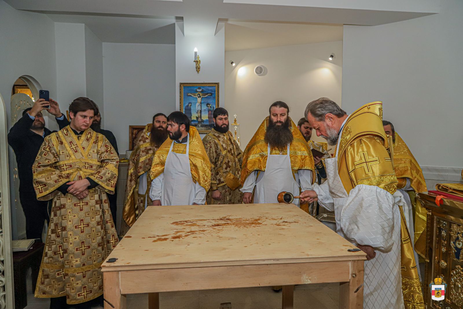 В продолжение визита, настоятель храма иерей Владимир Козонак ознакомил Его Высокопреосвященство с текущим положением строительных работ по обустройству верхнего придела церкви, а также с планами дальнейшей деятельности прихода на территории Института.