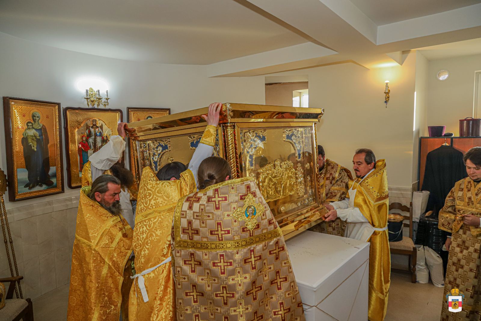 По отпусте Литургии последовал благодарственный молебен и славление святителю Иоанну Златоусту, после чего Высокопреосвященный Владыка Митрополит обратился к духовенству и мирянам с архипастырским словом. Предстоятель Православной Церкви Молдовы сердечно поблагодарил администрацию Кишиневского Института Неврологии и Нейрохирургии «Диомид Герман» и всех благотворителей и ктиторов за посильную помощь в благоукрашении новопостроенного храма.
