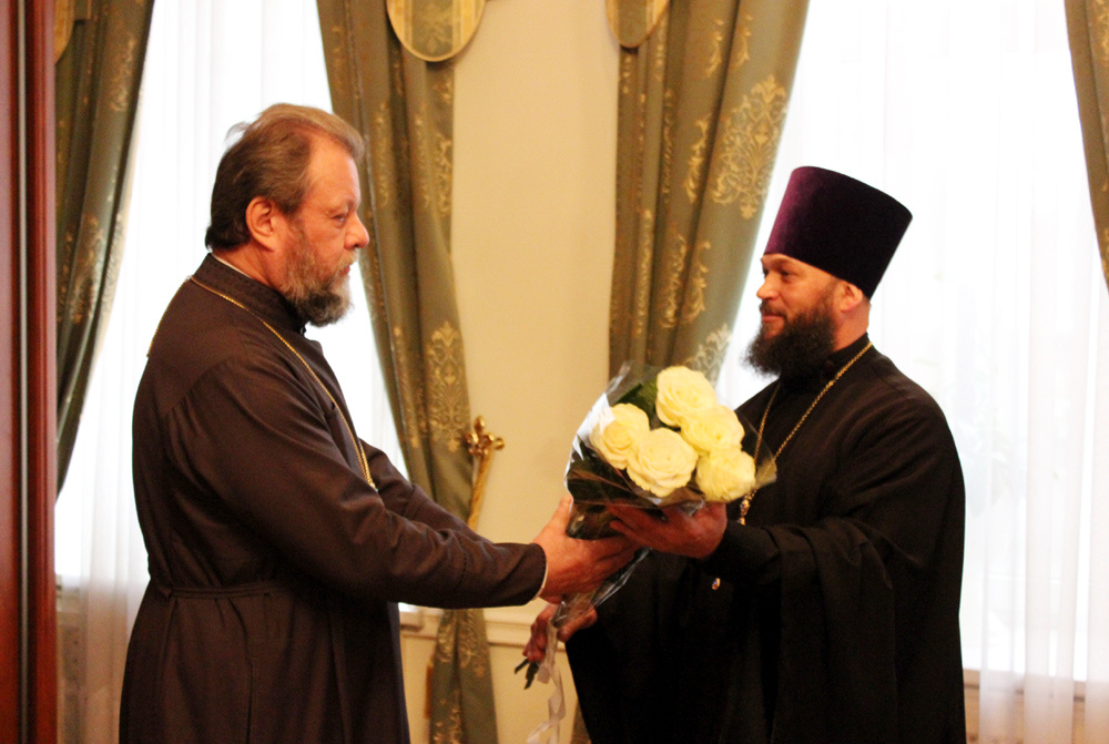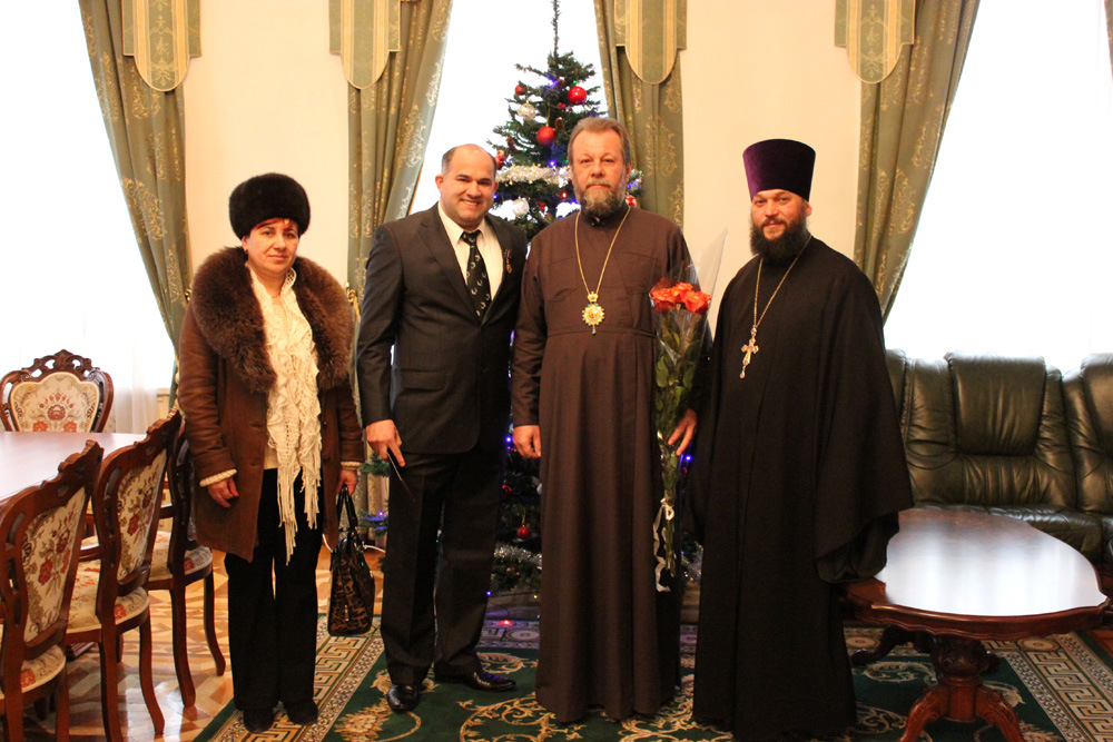 Утром, 15 января 2014 года, Высокопреосвященный Митрополит Кишиневский и всея Молдовы Владимир встретился в своем рабочем кабинете с митр. прот. Иоанном Солонару, настоятелем храма святых равноапостольных Константина и Елены с. Чимишень Криулянского р-на, в сопровождении г-на Луиса Мария Жувинел Байаз, директора компании Порко Бело из с. Чимишень, и директора местного лицея г-жи Валентины Писаренко.