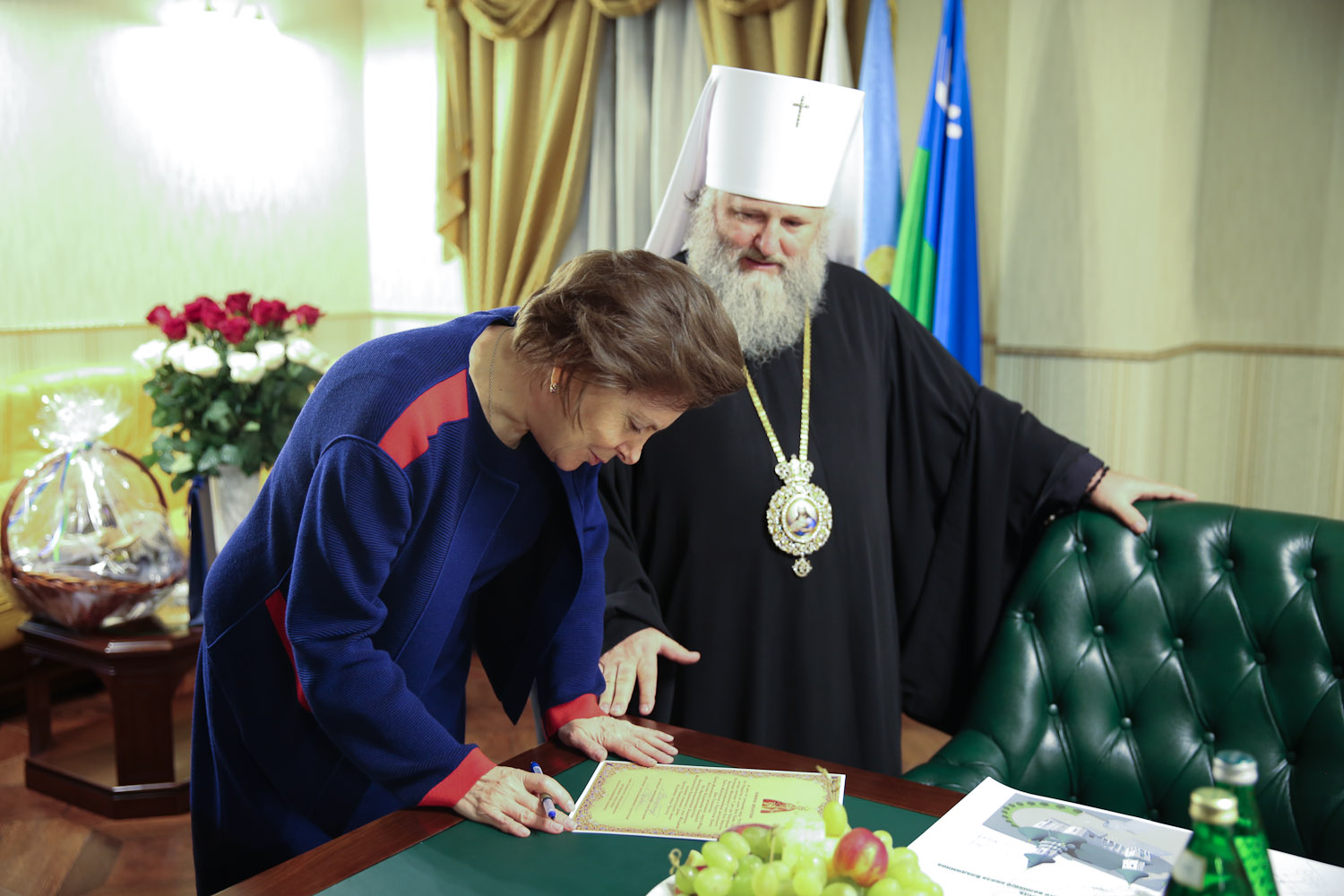 5 сентября, по окончанию Всенощного бдения, в рабочем кабинете главы Ханты-Мансийской митрополии, в епархиальной резиденции города Сургута, состоялась встреча Митрополита Кишиневского и всея Молдовы Владимира с временно исполняющей обязанности губернатора Ханты-Мансийского автономного округа-Югры Н.В. Комаровой.
