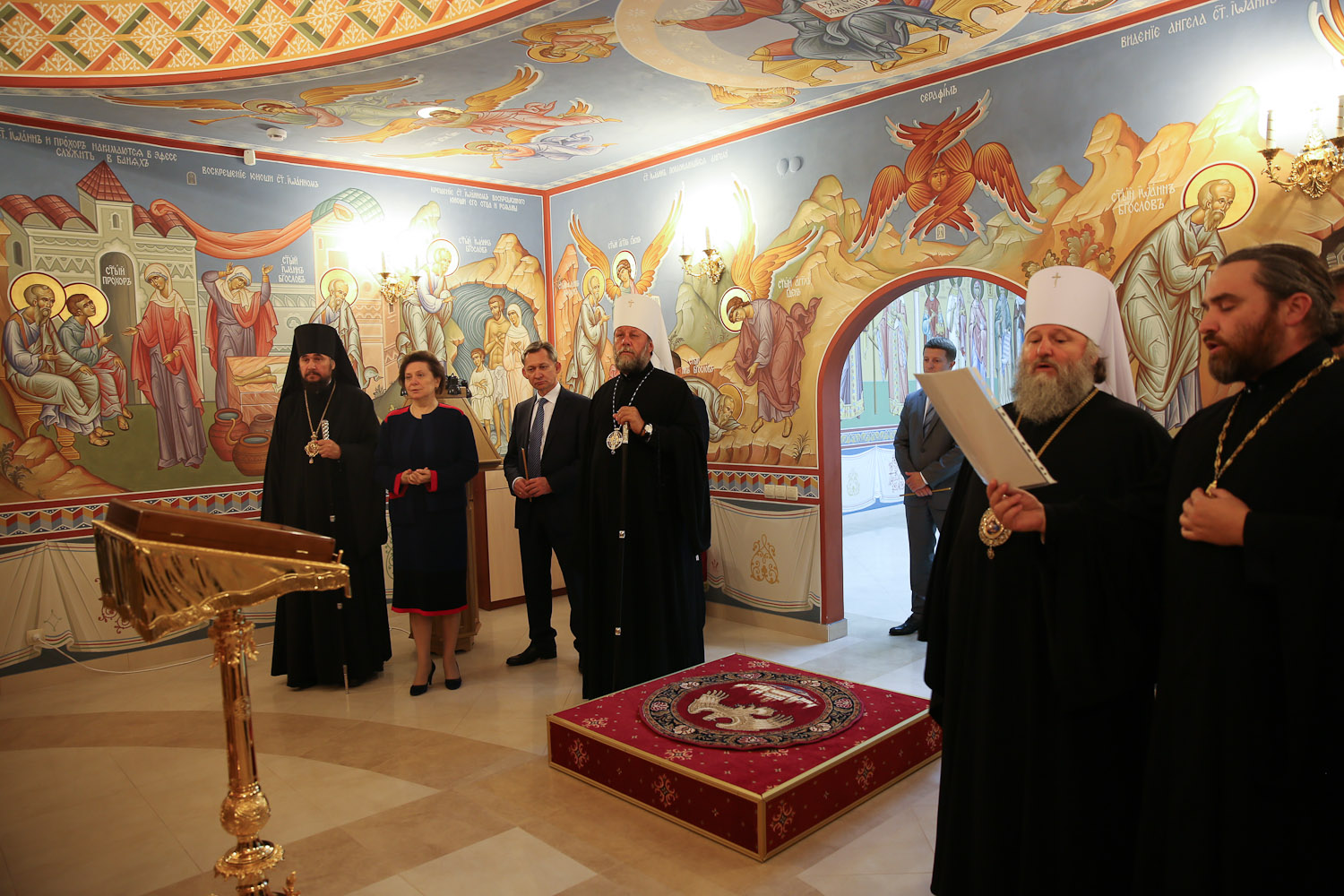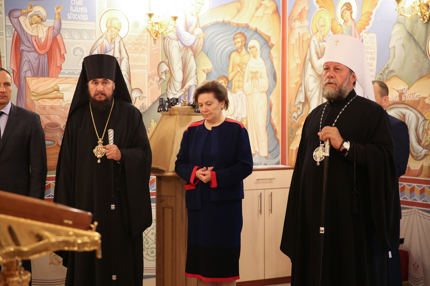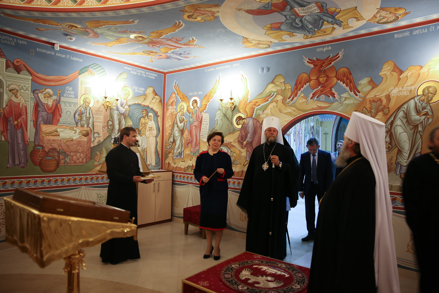 В сопровождении Митрополита Кишиневского и всея Молдовы Владимира, митрополита Ханты-Мансийского и Сургутского Павла, епископа Югорского и Няганского Фотия, врио губернатора Ханты-Мансийского автономного округа-Югры посетила домовый храм епархиальной резиденции посвященный апостолу и евангелисту Иоанну Богослову.