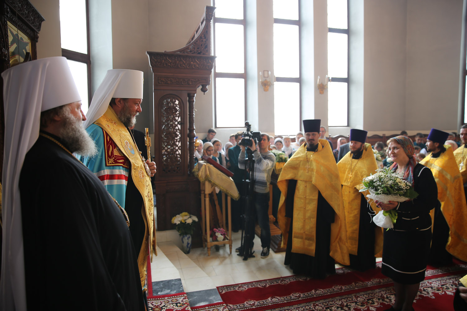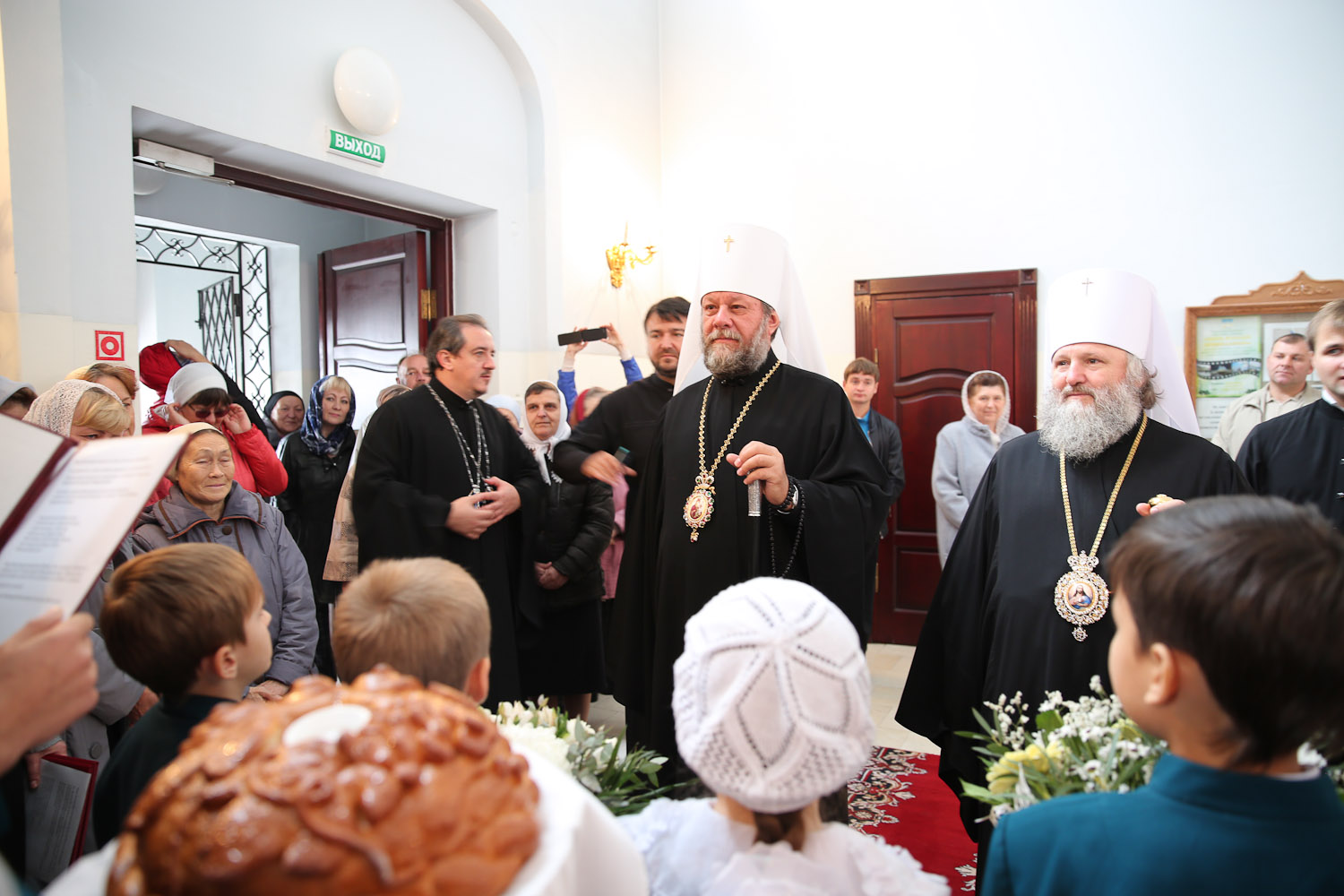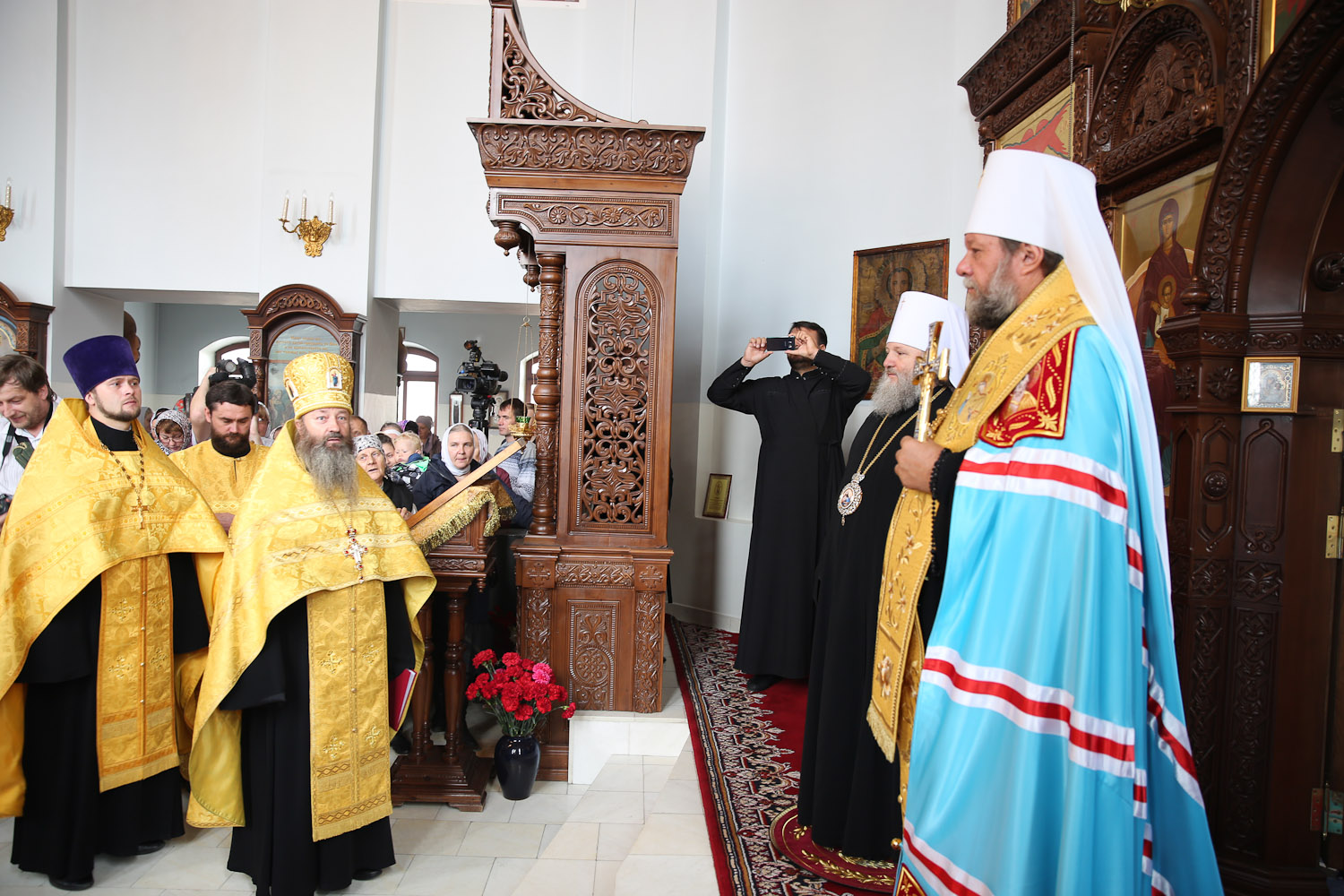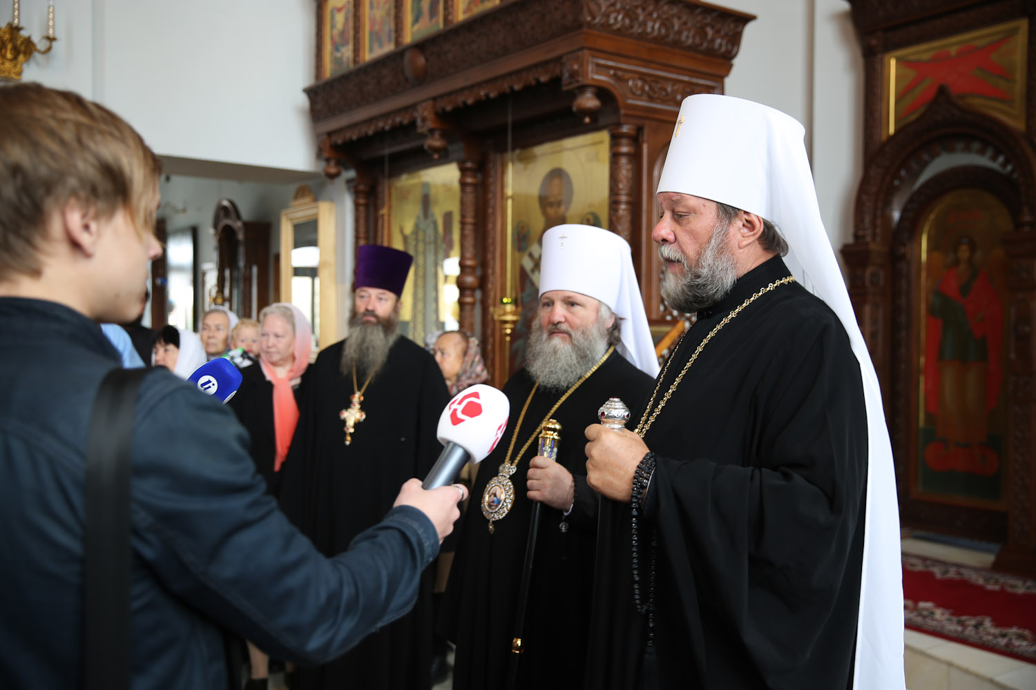 По окончанию богослужение к Митрополиту Владимиру с приветственным словом обратились благочинный Нефтеюганского благочиния протоиерей Николай Матвийчук, глава администрации города Пыть-Ях Р. И. Стадлер, первый заместитель главы Нефтеюганского района Ю. Ю. Копылец.