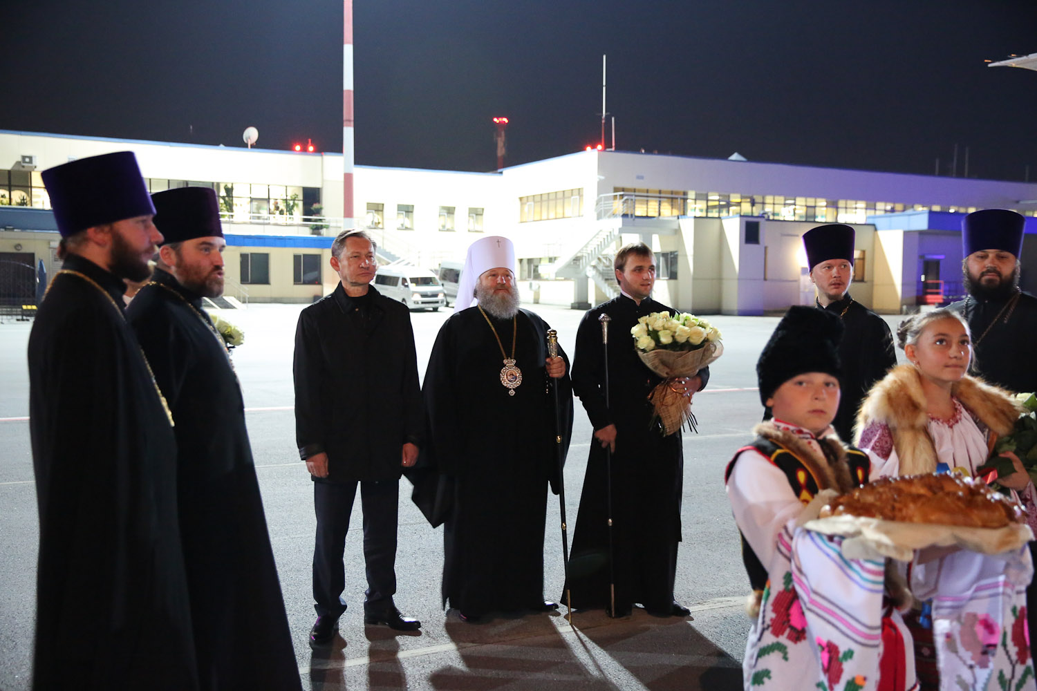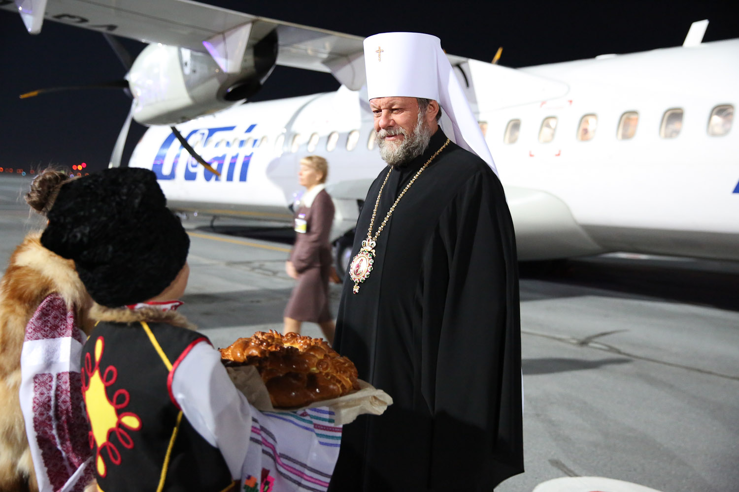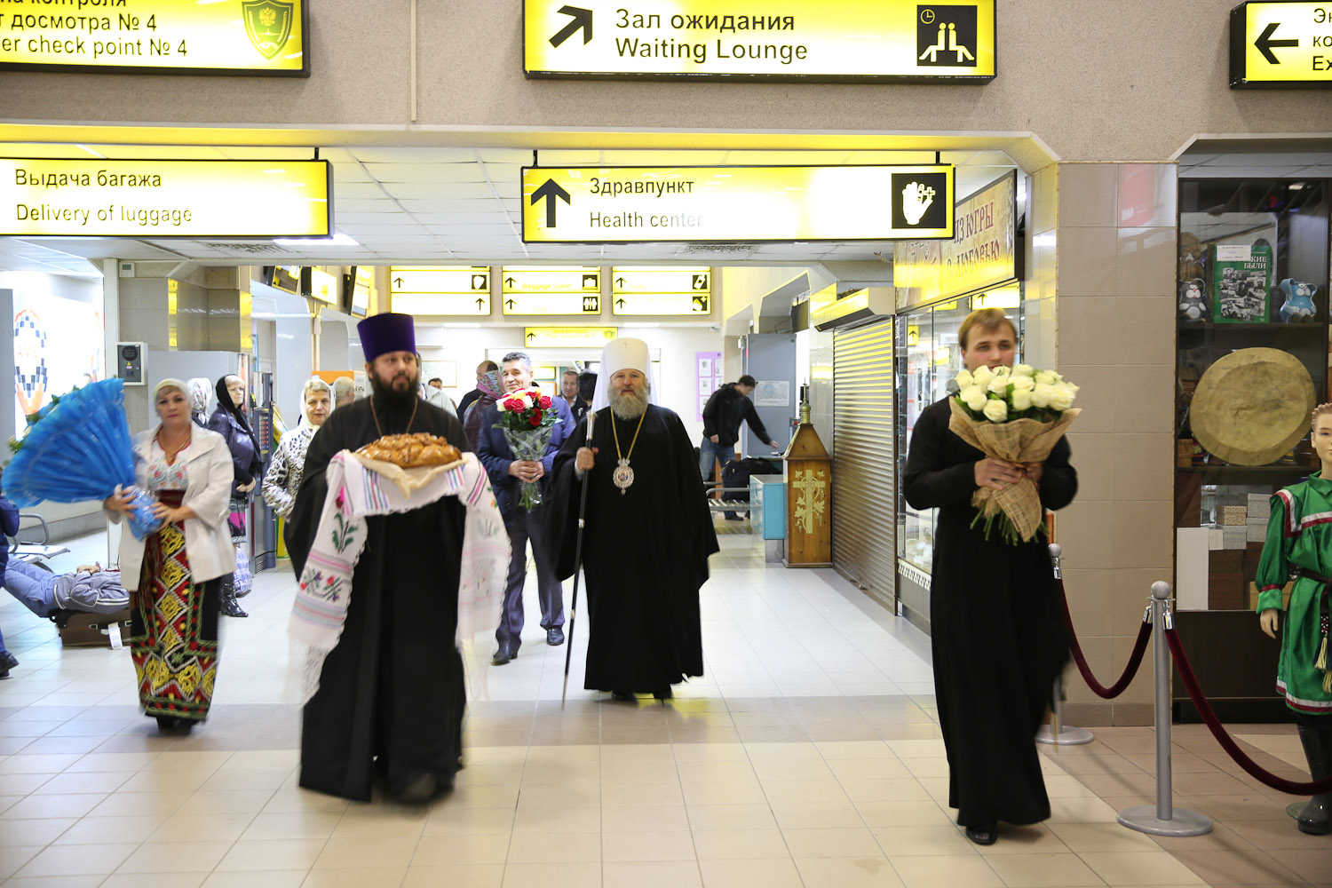 В аэропорту Сургута Митрополита Кишиневского и всея Молдовы Владимира встречали: митрополит Ханты‐Мансийский и Сургутский Павел, глава г. Сургута Д.В. Попов, благочинный Сургутского благочиния протоиерей Антоний Исаков, духовенство Ханты‐Мансийской епархии.