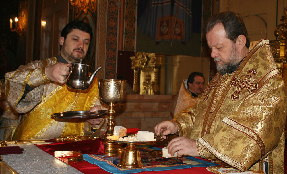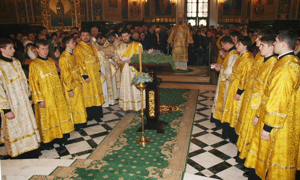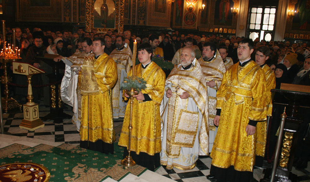 В дальнейшем Предстоятель пожелал всем изобильного Нового года, особенно духовными дарами и прекрасными свершениями, все во славу Господа, затем, по традиции, Его Высокопреосвященство и служители собора посеяли прихожан.