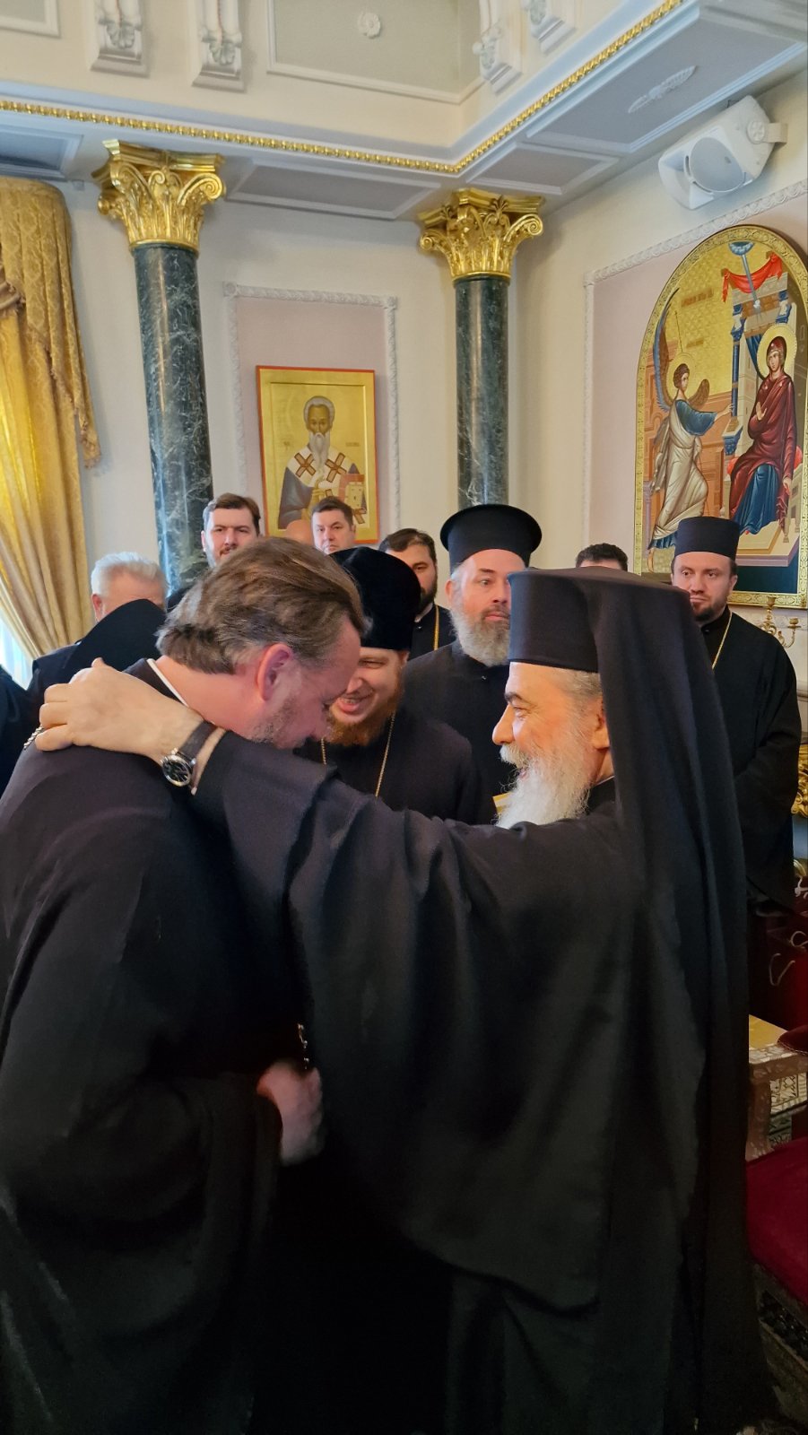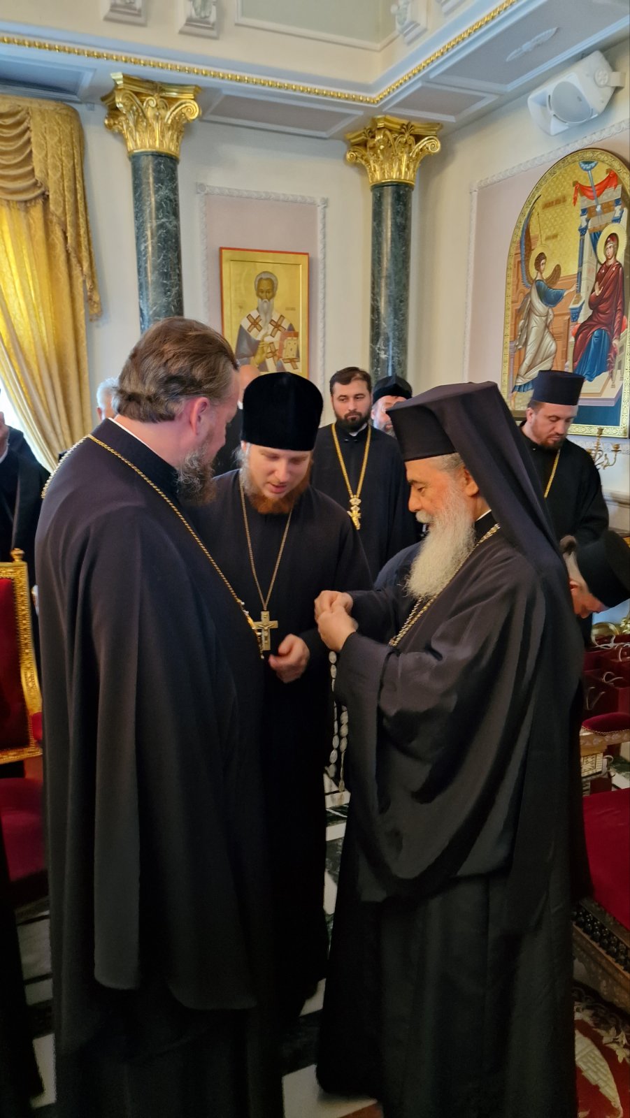 Блаженнейший Патриарх Феофил III сердечно приветствовал гостей, высоко оценив любовь Митрополита Владимира и молдавских паломников к святыням Израиля и Палестины. В знак признательности и с большим благоговением Высокопреосвященный Митрополит Владимир преподнес Блаженнейшему Патриарху Иерусалимскому памятные дары от Православной Церкви Молдовы. В свою очередь, Его Блаженство преподнес молдавским паломникам небольшие иконы с образом Божией Матери «Иерусалимская».