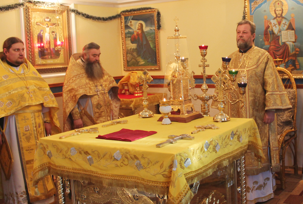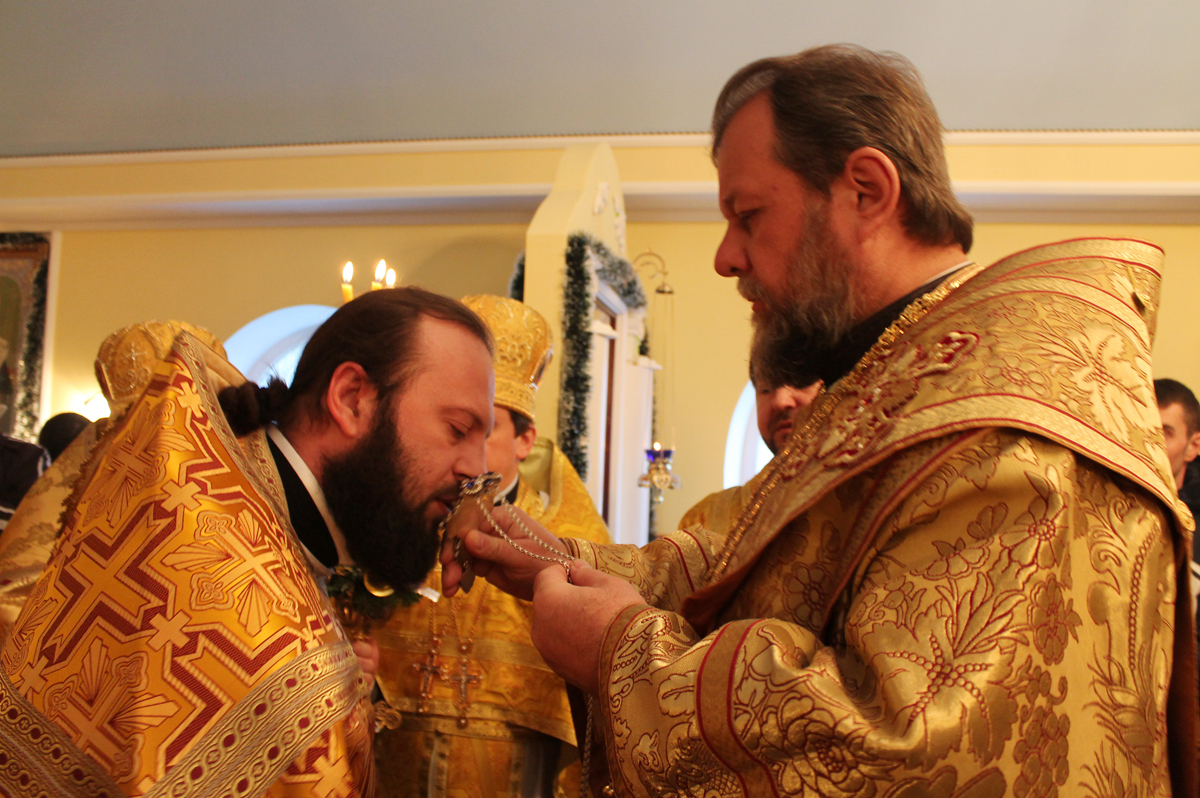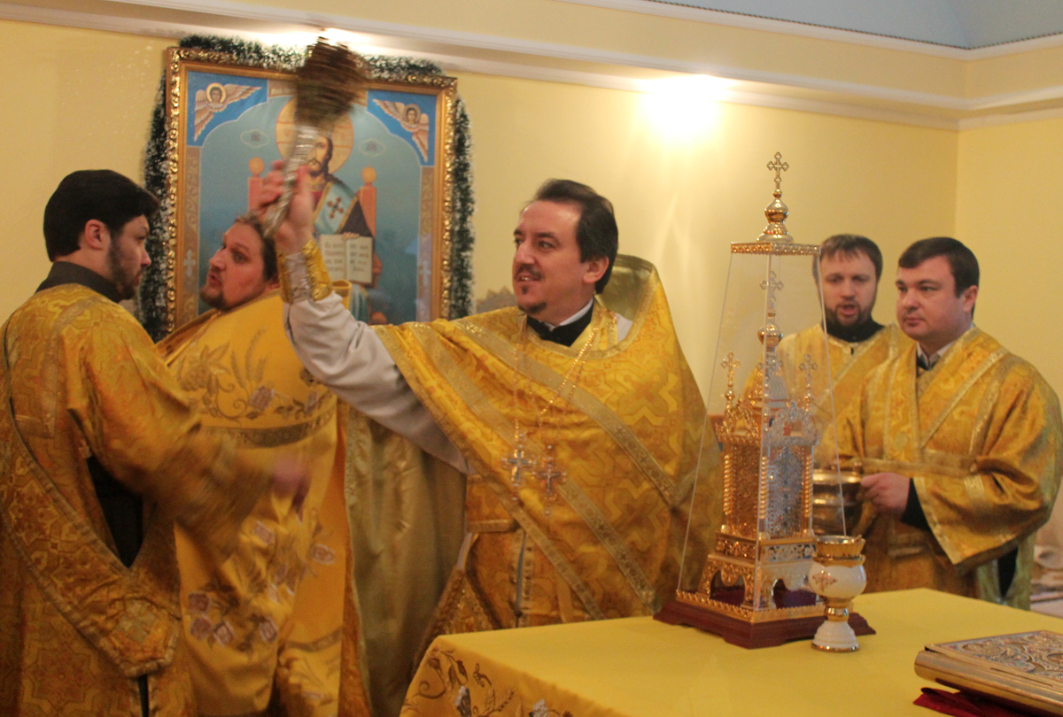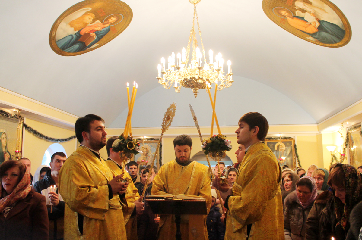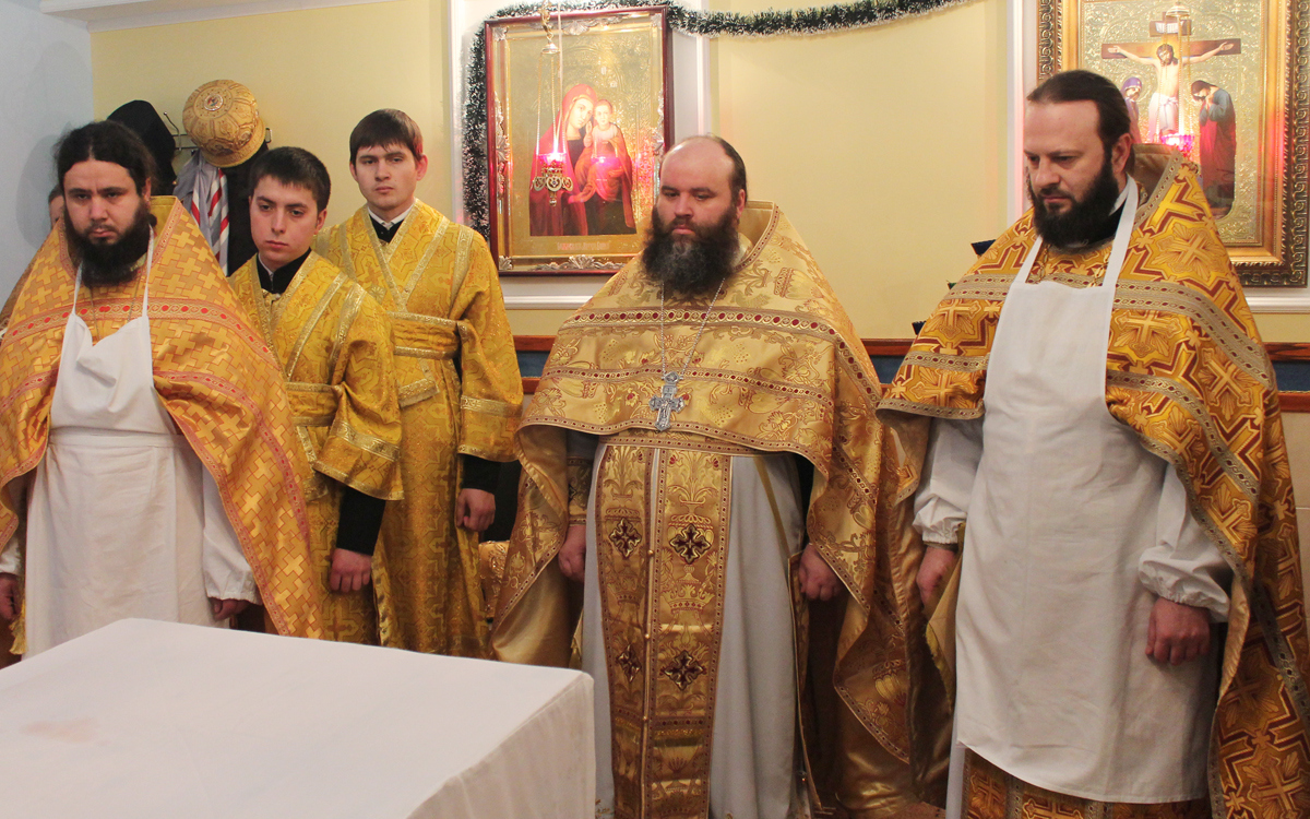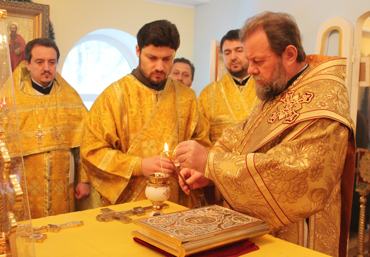 Сослужили Его Высокопреосвященству: секретарь Митрополии митр. прот. Вадим Кейбаш, председатель епархиального Отдела по делам монастырей и игумен Курковского Богородице-Рождественского мужского монастыря архим. Силуан (Шалару), игумен Сахарнянского Свято-Троицкого мужского монастыря архим. Адриан (Бачу), игумен Цыповского Успенского скального мужского монастыря архим. Поликарп (Бырназ), духовник Васильевского женского монастыря игумен Алексий (Делендря), а также духовенство Резинского благочиния.