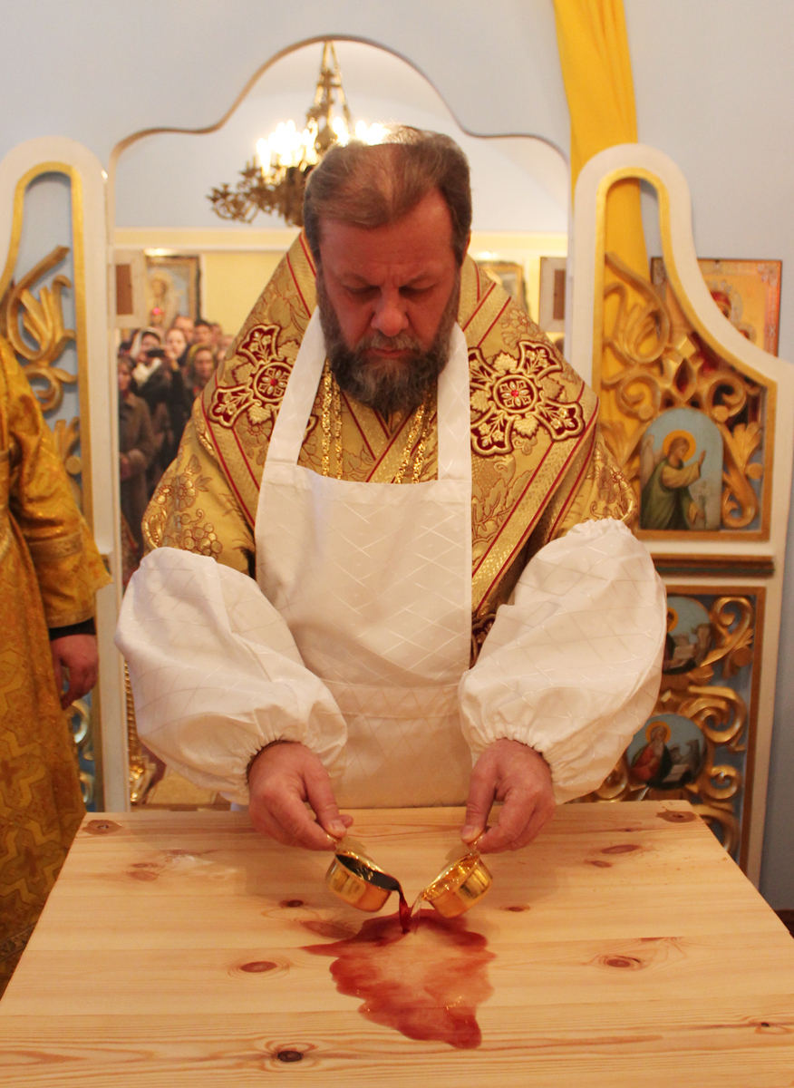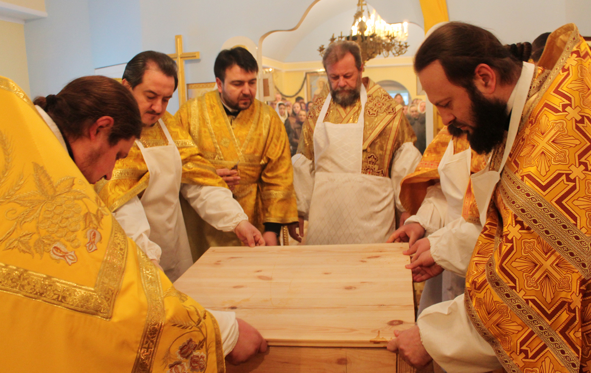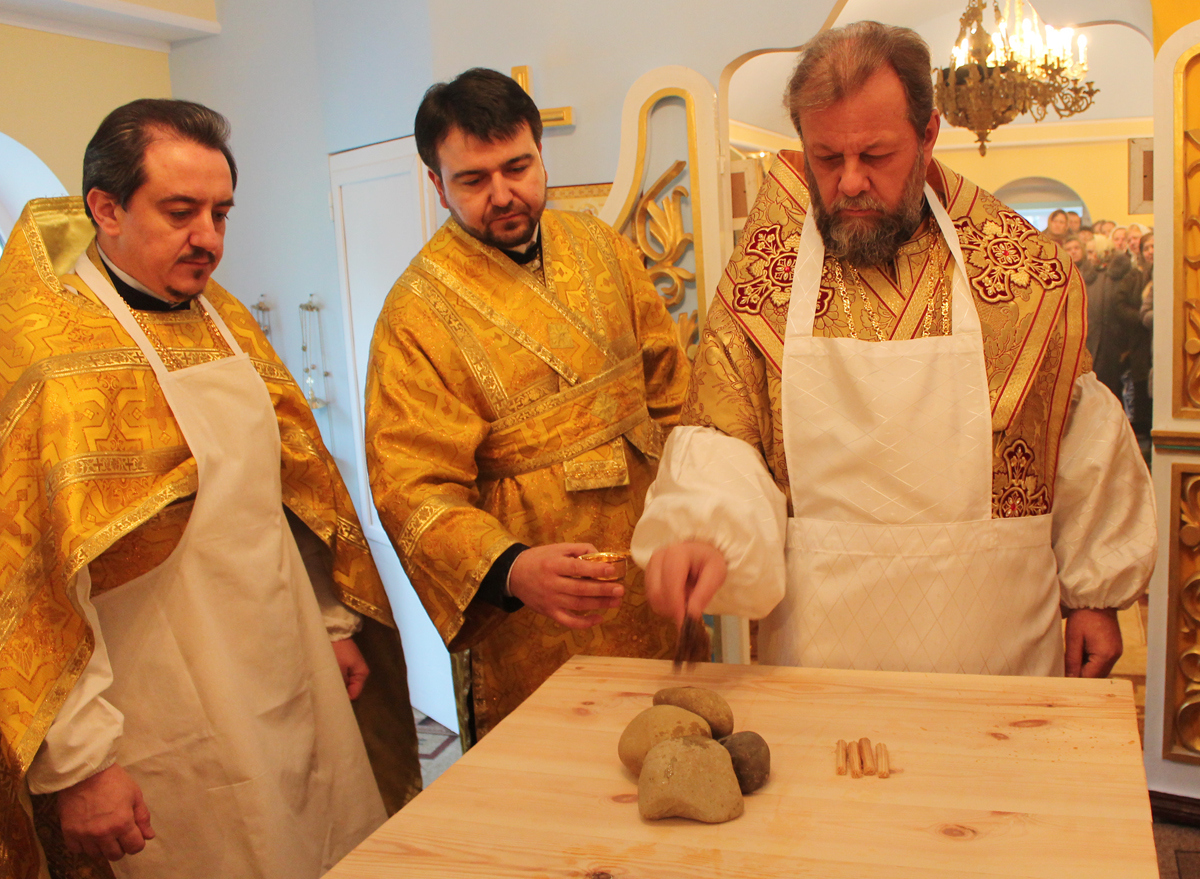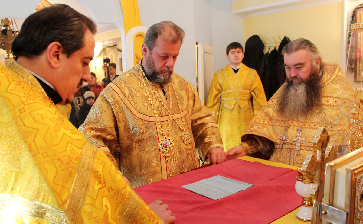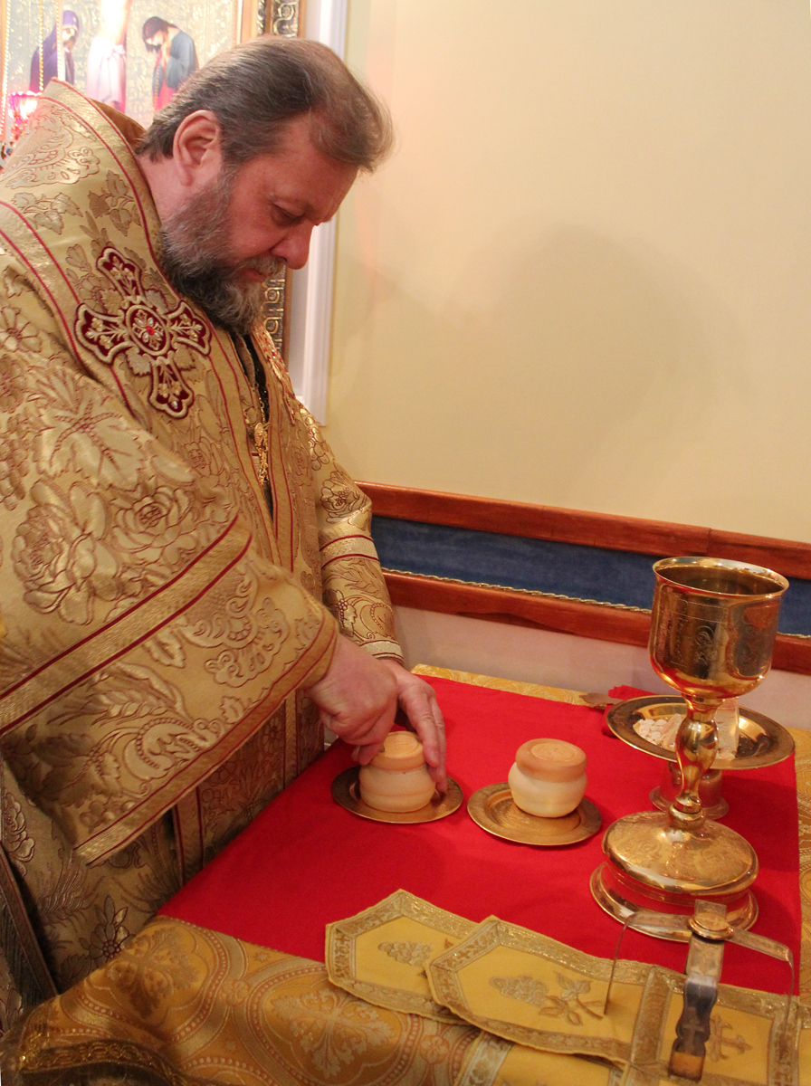 Сослужили Его Высокопреосвященству: секретарь Митрополии митр. прот. Вадим Кейбаш, председатель епархиального Отдела по делам монастырей и игумен Курковского Богородице-Рождественского мужского монастыря архим. Силуан (Шалару), игумен Сахарнянского Свято-Троицкого мужского монастыря архим. Адриан (Бачу), игумен Цыповского Успенского скального мужского монастыря архим. Поликарп (Бырназ), духовник Васильевского женского монастыря игумен Алексий (Делендря), а также духовенство Резинского благочиния.