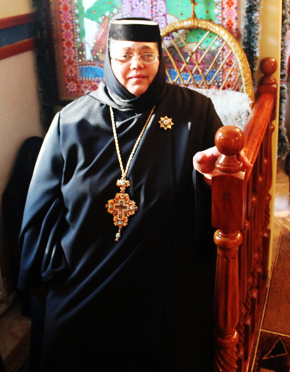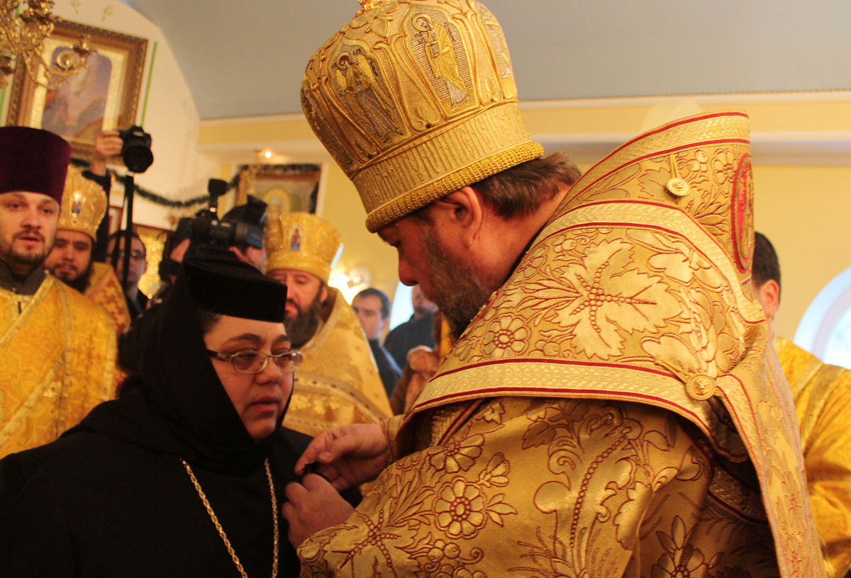 За богослужением вместе с монастырской общиной и многочисленными паломниками и гостями молилась настоятельница Васильевского монастыря игуменья Херувима (Вырлан).