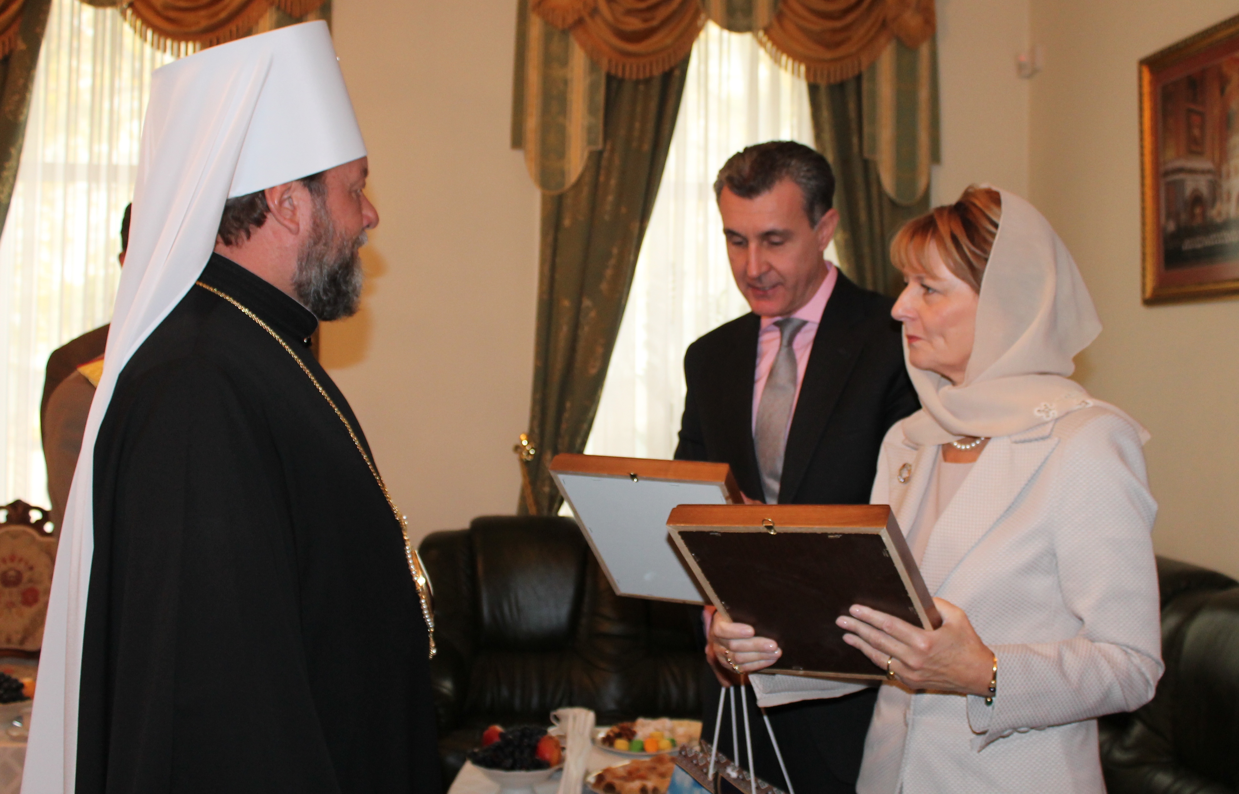 В завершение встречи, Митрополит Владимир передал в дар высоким гостям иконы, выразив надежду, что эти святые образа будут находиться с ними на всем их жизненном пути и станут видимым небесным благословением во всех их добрых начинаниях.