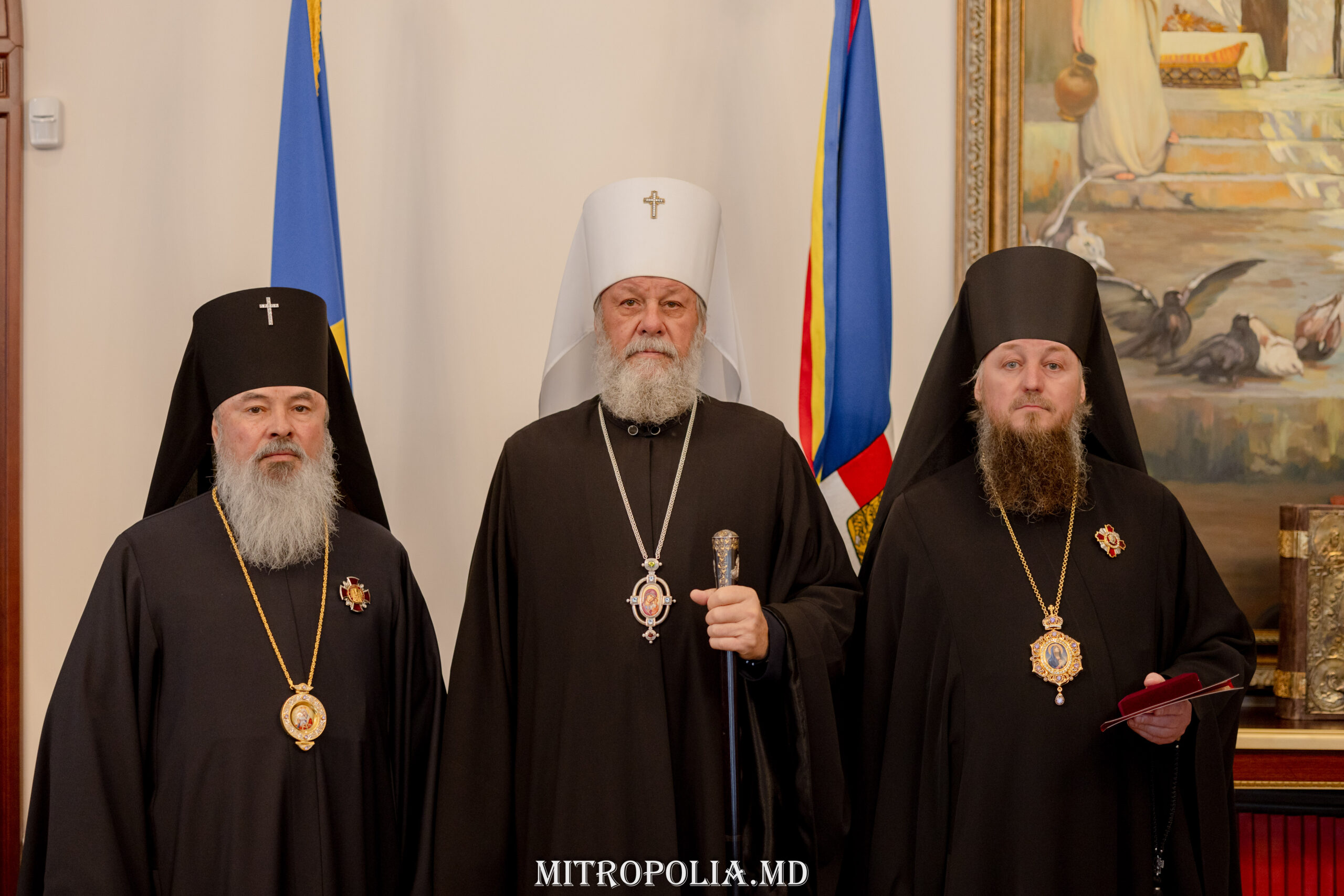 Перед началом заседания Синода, Высокопреосвященный Митрополит Кишиневский и всея Молдовы Владимир удостоил высоких церковных наград нескольких архиереев, особо потрудившиеся на благо Святой Церкви и отметившие памятные даты:
