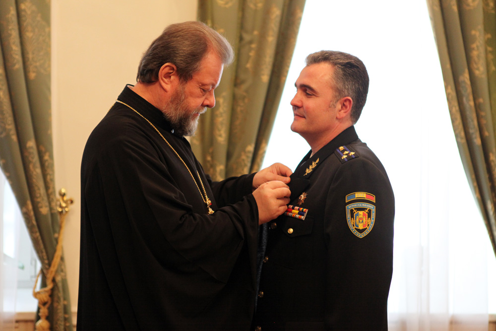 Высокопреосвященный митрополит Владимир принял в епархиальном управлении нескольких сотрудников Службы государственной охраны и вручил им церковные награды в благодарность за их работу по обеспечению безопасности и во время проведения самых важных мероприятий в жизни Молдавской Православной Церкви.