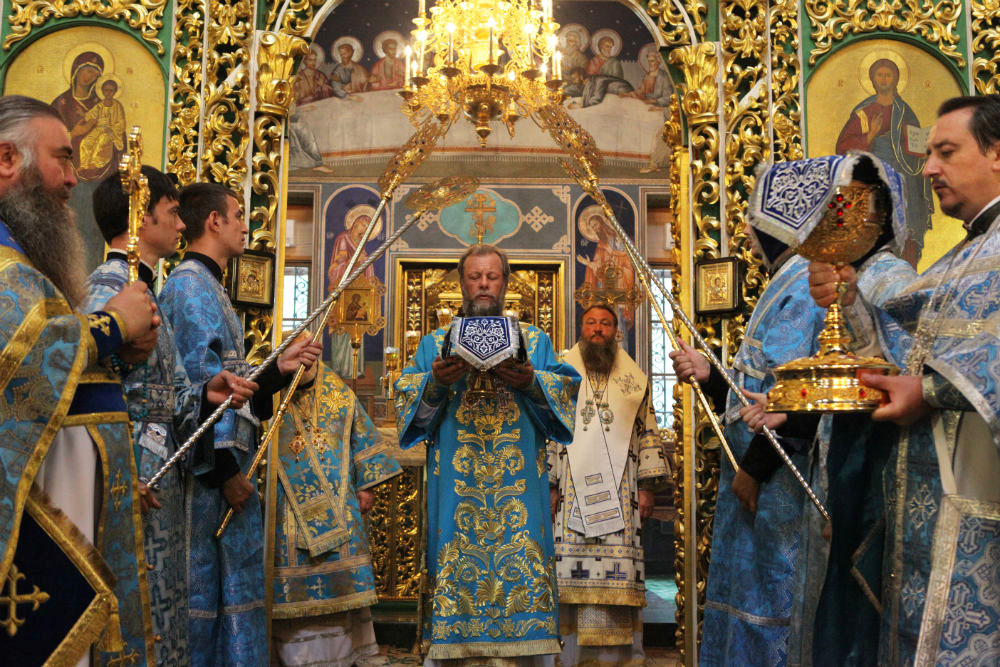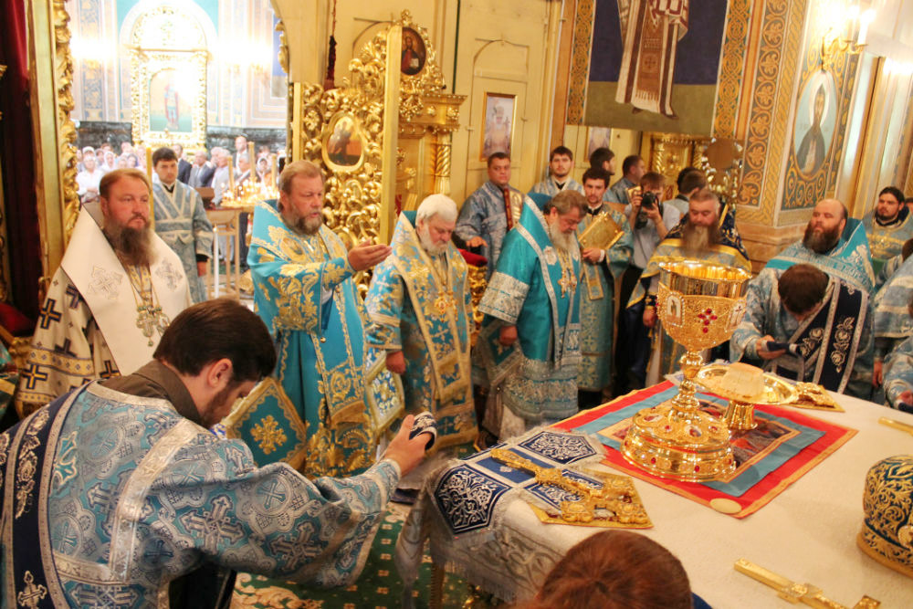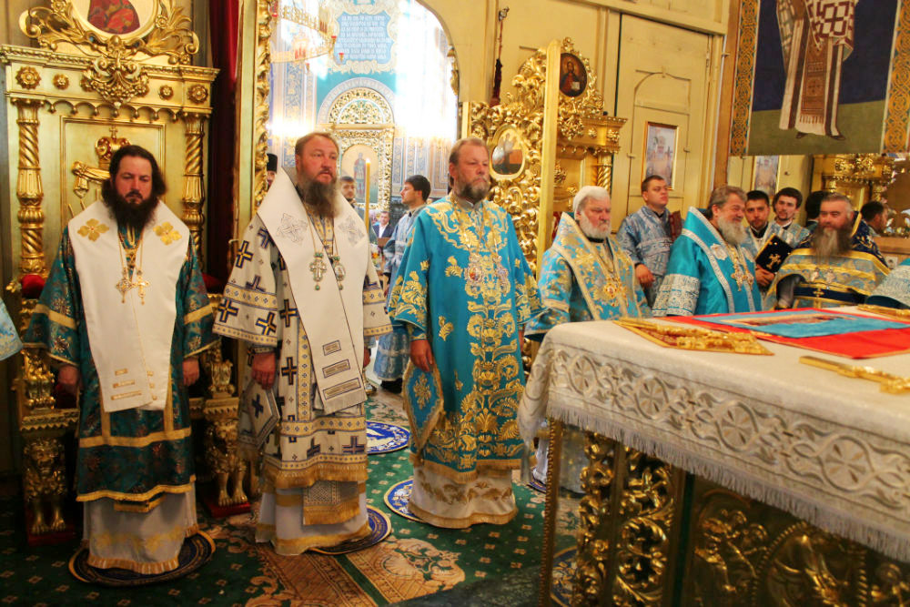 Его Высокопреосвященству сослужили: Высокопреосвященный архиепископ Тираспольский и Дубоссарский Савва, Преосвященный епископ Кагульский и Комратский Анатолий, Преосвященный епископ Унгенский и Ниспоренский Петр, Преосвященный епископ Единецкий и Бричанский Никодим, Преосвященный епископ Нефтекамский и Бирский Амвросий, секретарь Митрополии митрофорный протоиерей Вадим Кейбаш, председатель епархиального Отдела по делам монастырей архимандрит Силуан (Шалару), настоятели монастырей и благочинные церквей Кишиневской епархии, соборное духовенство.