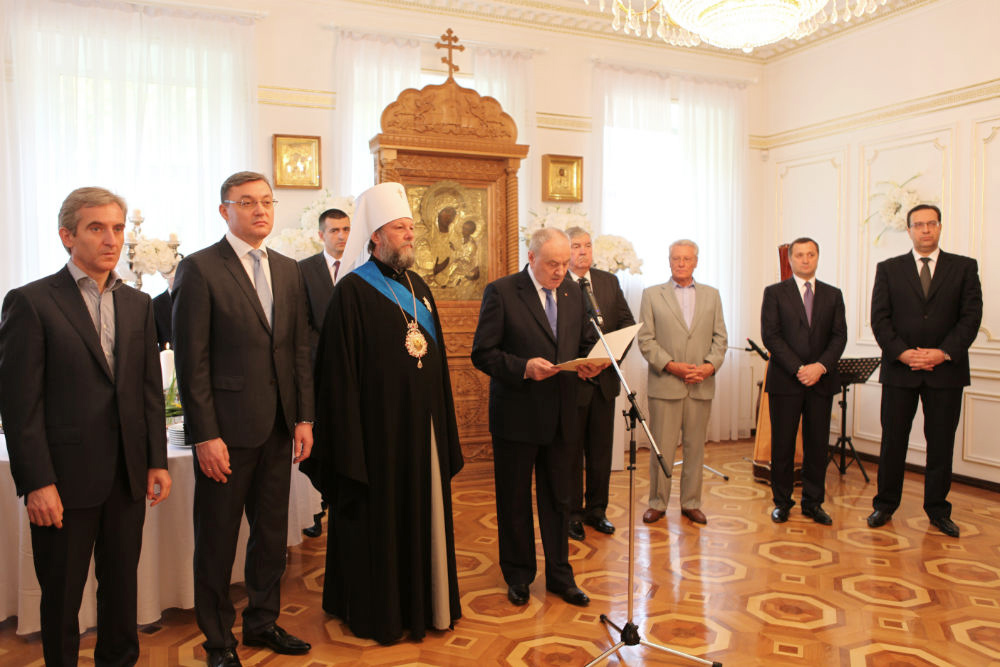 Далее, Преосвященный епископ Кагульский и Комратский Анатолий зачитал указ, подписанный всеми членами Синода Православной Церкви Молдовы, о представлении Высокопреосвященного Митрополита Кишиневского и всея Молдовы Владимир к самой высокой награде Молдавской Митрополии — ордену Митрополии, в знак особой признательности и самой высокой оценки заслуг юбилеря на протяжении четвертьвекового архипастырского служения во главе Православной Церкви Молдовы. Таким образом, Высокопреосвященный владыка Митрополит стал первым из граждан Республики Молдовы, кто был удостоен этой высочайшей церковной награды.
