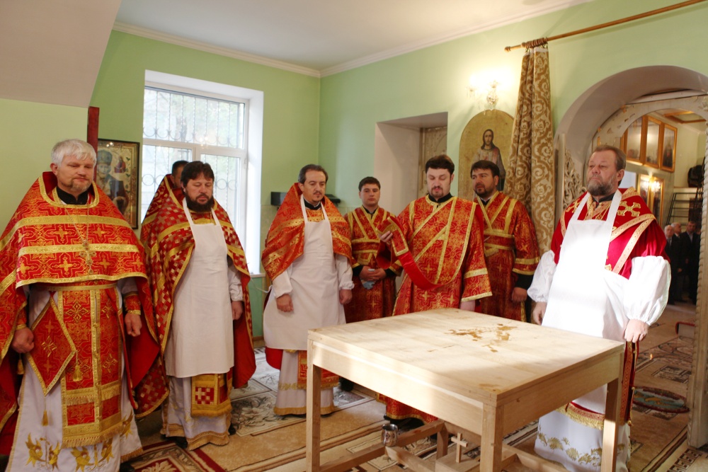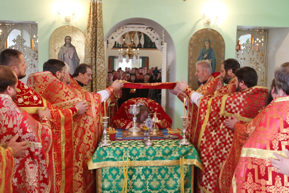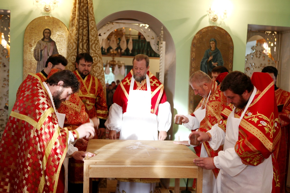 Праздничное богослужение началось с чина освящения Святого Престола. Далее последовала Божественная литургия, которую возглавил Митрополит Кишиневский и всея Молдовы Владимир.
