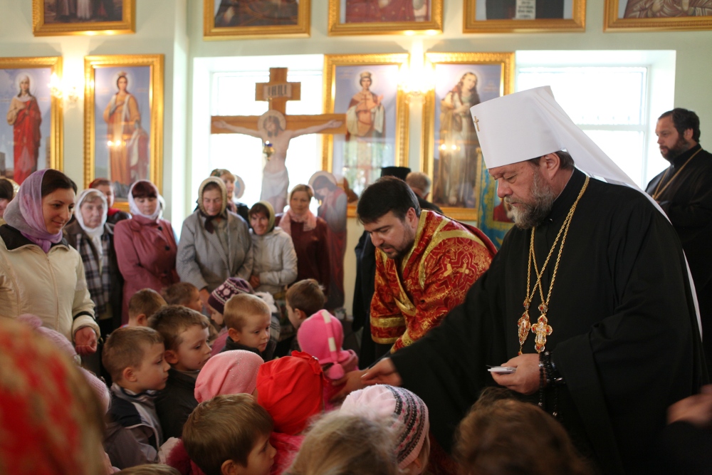 Владыку Митрополита встречал собор священнослужителей во главе с настоятелем прихода митр. прот. Василием Стамати.