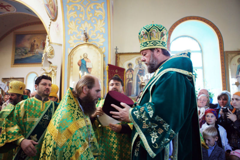 За вклад в благоустройство церкви и хорошую организацию приходской жизни владыка Владимир наградил настоятеля, митр. прот. Федора Постикэ, правом служить литургию с открытыми Царскими вратами до «Отче наш».