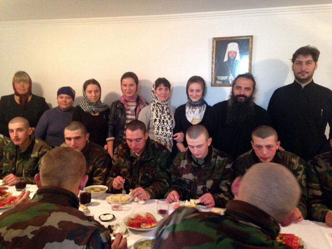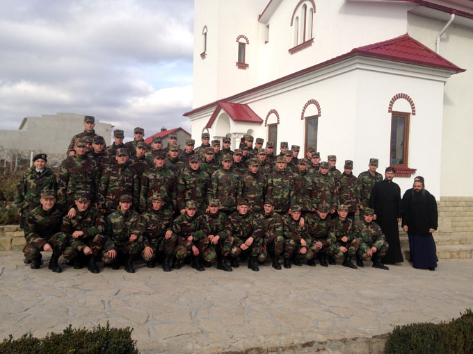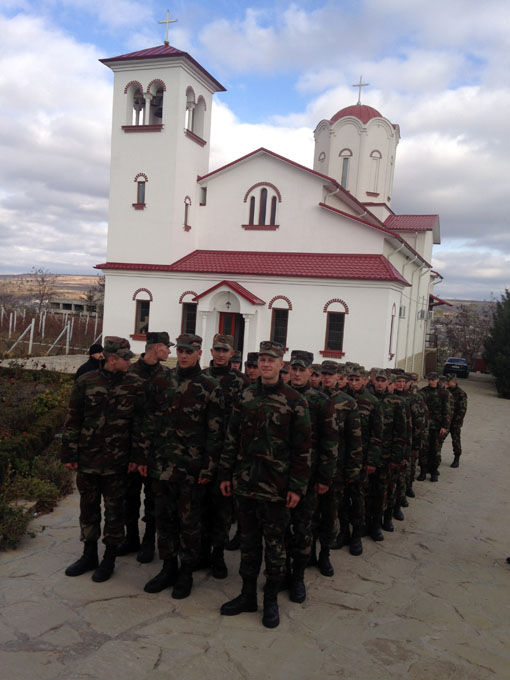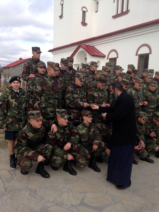 Военнослужащие молились за Божественной литургией, после чего у них была возможность поклониться святыням обители и побеседовать с игуменом монастыря архим. Порфирием (Добре). Отец-наместник рассказал гостям об истории основания монастыря и о жизни братии.